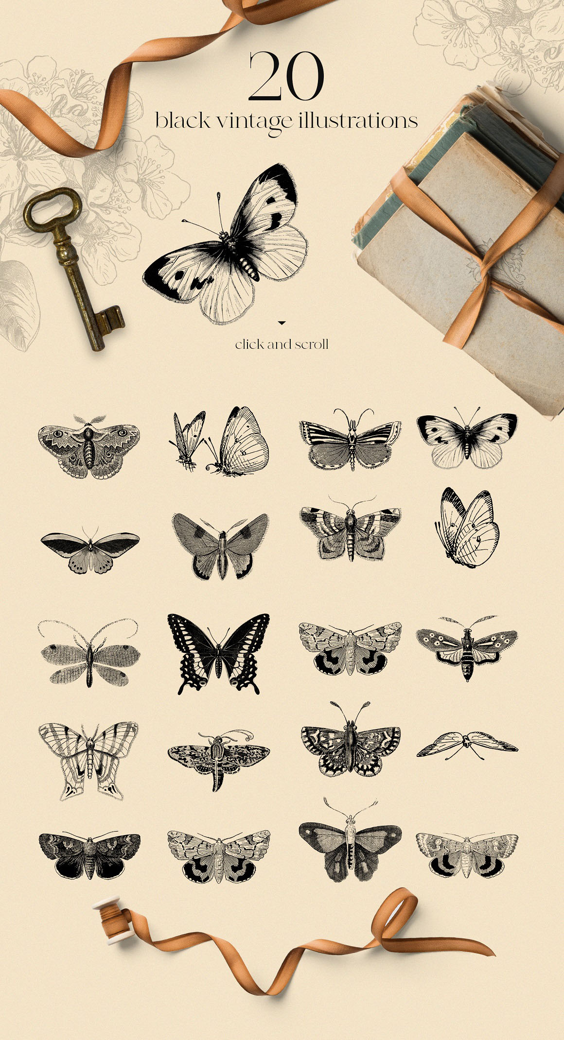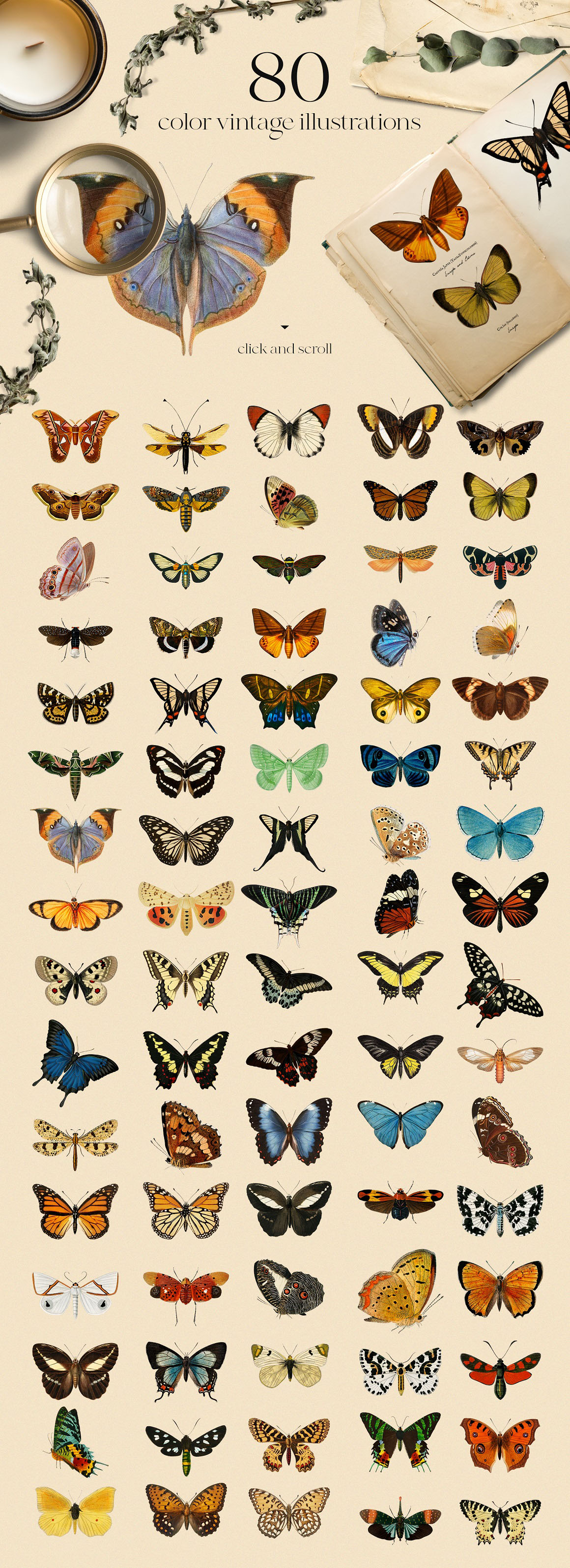 Meet new awesome collection with vintage butterflies! Carefully selected from vintage books about nature, transfer in digital illustrations with clean accurate edges. Collection includes not only colored butterflies, but monochrome butterflies also avaliable. Each butterfly is an individual image in PNG format (300 dpi resolution) with transparent background in big size (approx 2000px fore some butterflies, and approx 3000px for other) great for print. Also I added name (were it was possible) for each butterfly. You will get not only graphic in hi-res but awesome patterns too – so you can create more interesting and unusual design just in few clicks. Perfect for card making, scrapbooking and invitations, stationery, fabric, posters, wallpapers, any vintage designs. Create invitations, modern or vintage wedding suite, bridal shower decoration, branding identity, greeting cards, posters, wall art, surface patterns, scrapbooking, gift wrapping paper, textile design, cosmetic, advertising, social media, packaging, cases, logos, quotes, blogs, web, banners and so on.