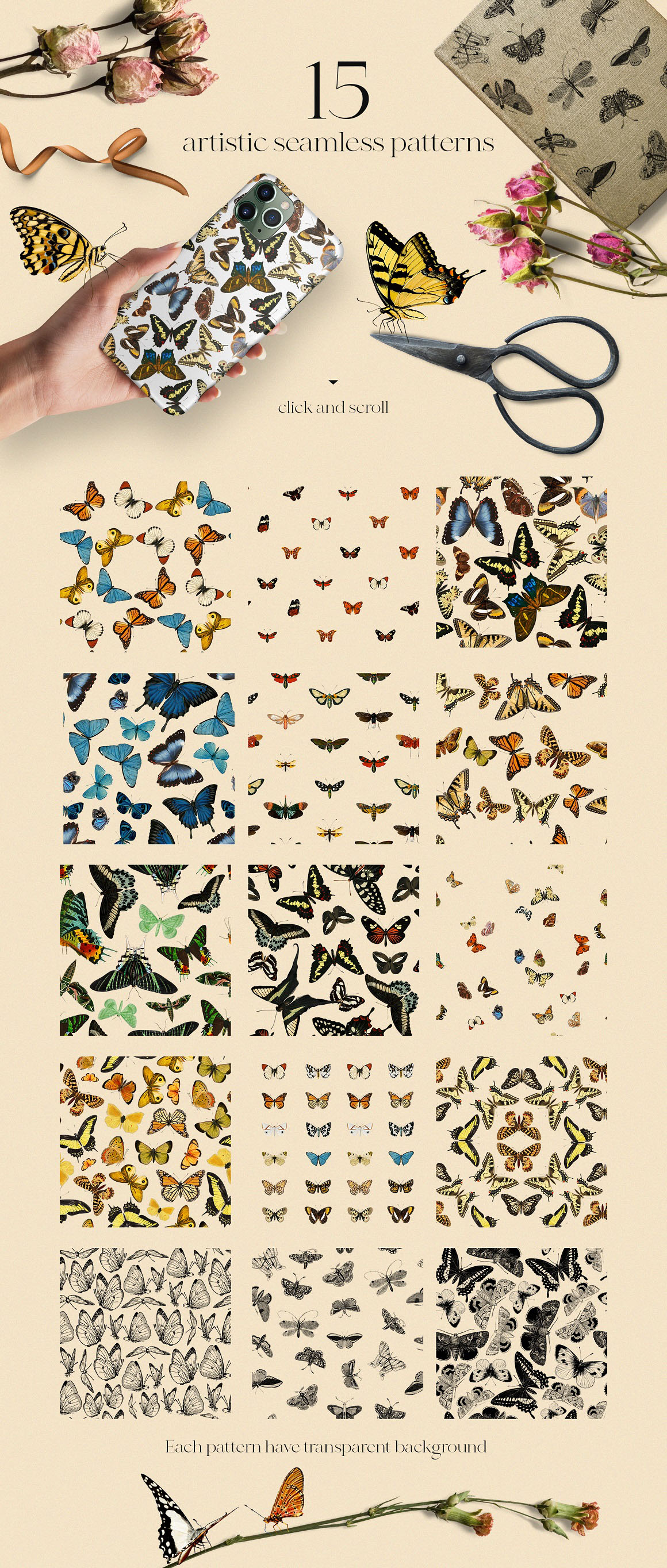 - 10x PNG patterns 5000*5000px with transparent background