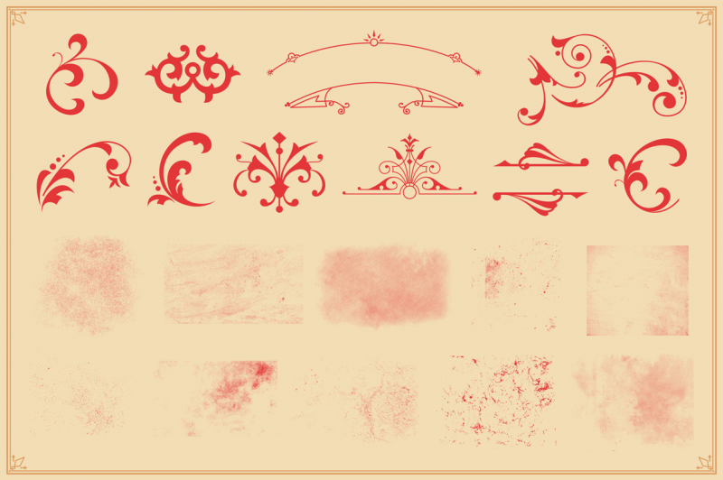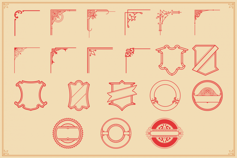 Inspired by vintage designs. This product contains many kind of frames, shapes, ribbons/banners, vintage elements and vector textures for finishing touch to make it looks more rusty. Helps you to do vintage themed designs such for business cards, greeting cards, wedding invitations, t-shirt design, logo, catalogue, even much more.