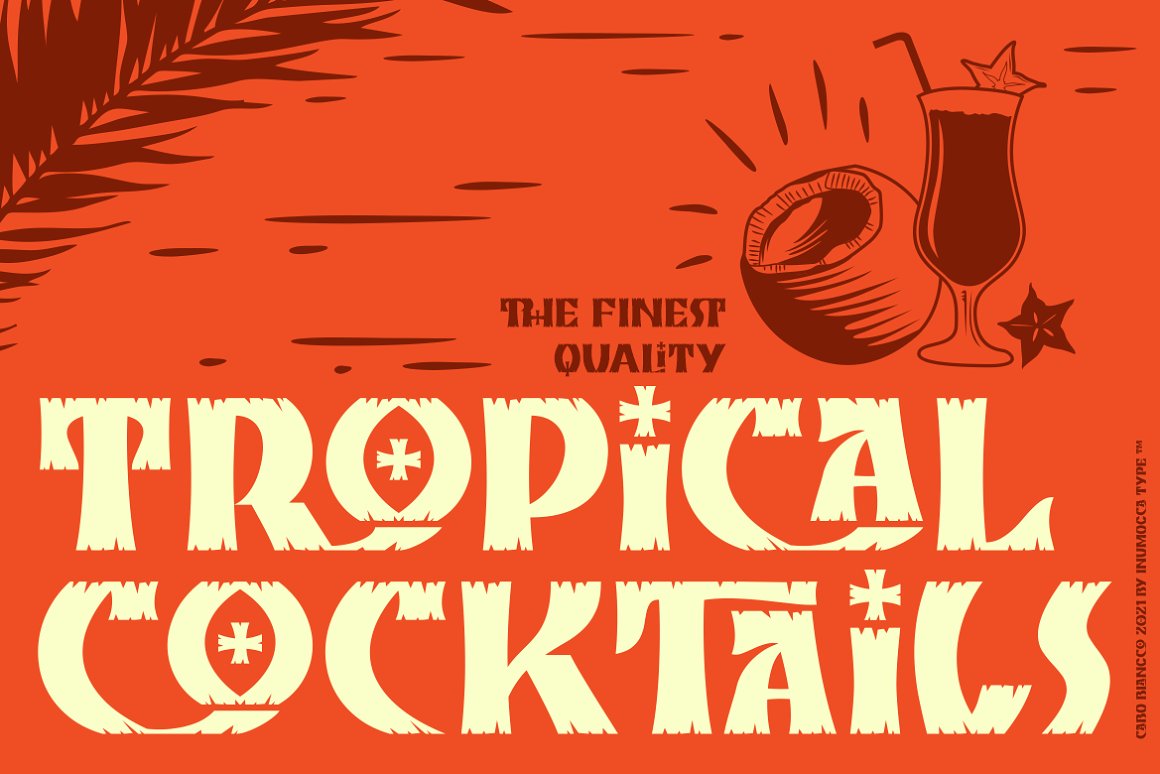 CABO BLANCCO is A Tropical Display Font inspired by a traditional carved wooden tiki, Powerfull and has a very distinct and Bold Character, Great for expressing a summer,The Typeface comes with Stylistic Alternates and Ligature Combinations Exellent typeface to use for covering your Project, like Branding, Headline Letter, Flyer, Signage, Quotes, Poster Typography, Bookcover, Magazine cover, Poster, Quotes Lettering, Logos, and more your project design.
