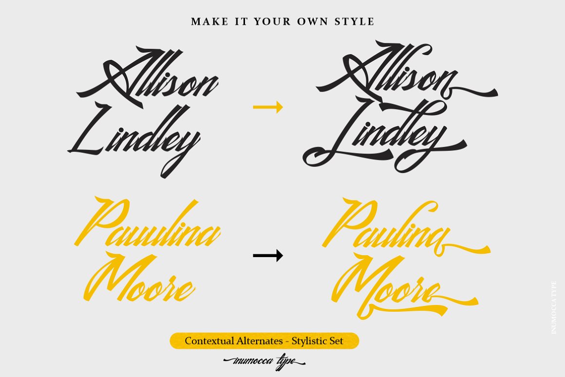 The Font comes with Ligature Set (110 more Ligature Style). Good to use for covering your Project, like Branding, Your Logos, Headline Letter, Bookcover or Book Content, Magazine cover, Poster, Quotes Lettering, and more your project design.