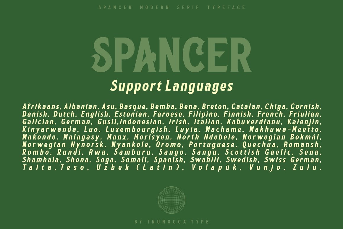 Spancer Modern Serif Typeface , simple and powerfull. come with some simple Alternates for covering your Project, like Branding, Movie Title, Headline Letter, Bookcover or Book Content, Magazine cover, Poster, Quotes Lettering, Logos, and more your project design.