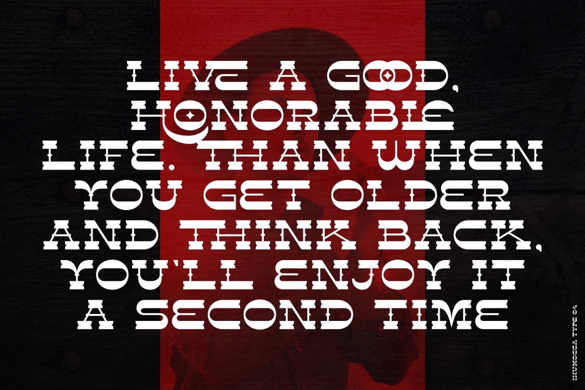 The BUCKAROOZ is A Reverse-Contrast letterform with Western Cowboy Atmosphere. They were particularly common in the nineteenth century, and I want to Presenting the letterform style of that era. The Typeface comes with Stylistic Set and Ligature Combinations Exellent typeface to use for covering your Project, like Branding, Movie Title, Headline Letter, Bookcover or Book Content, Magazine cover, Poster, Quotes Lettering, Logos, and more your project design.