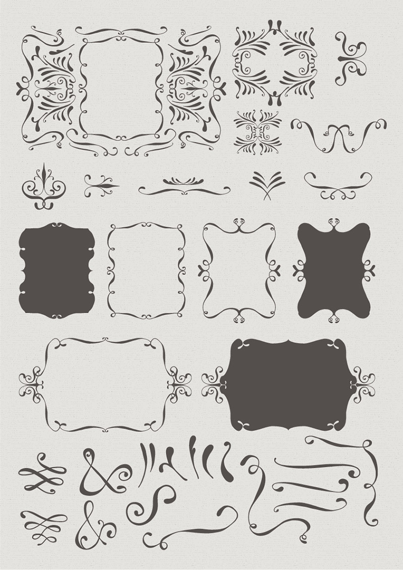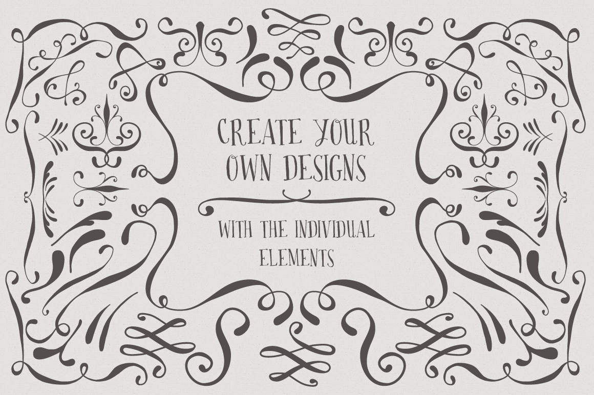 This decorative element vector kit is a great addition to any designers toolbox! Create unique, beautiful logos, signage, posters, invitations and much more. Combine the individual hand drawn swirls and curls to form an almost-endless combinations of designs and decoration. Add some beautiful rustic fonts and you have an instant vintage look! ADOBE ILLUSTRATOR CS OR NEWER REQUIRED!