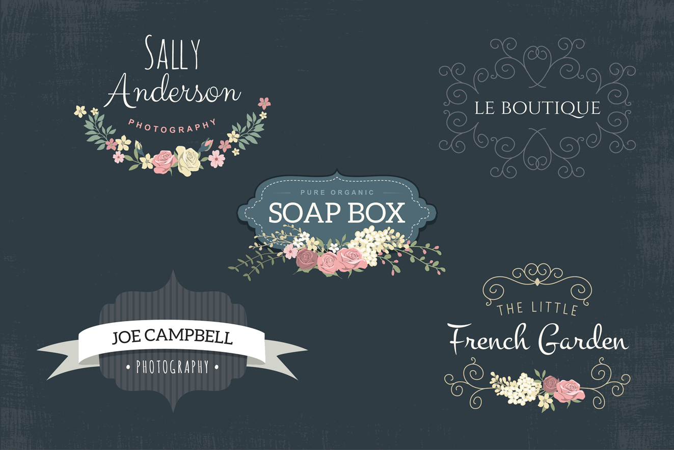 This French inspired vintage set is perfect for effortless brand building. All the files are well organized in layers, ready for you to edit and customize. And if you don’t have software to edit the vector files, I’ve also included a layered PSD file of each logo that you can easily personalize.