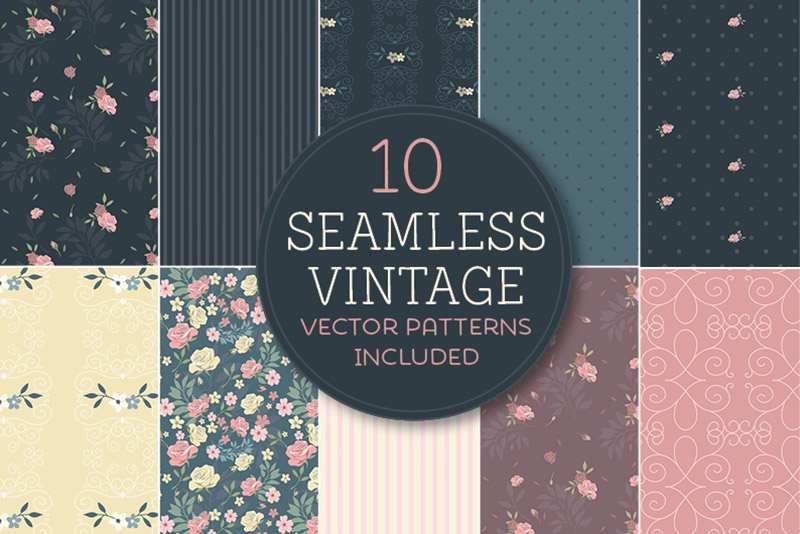 - 10 Seamless Vintage Vector Patterns (AI & EPS)