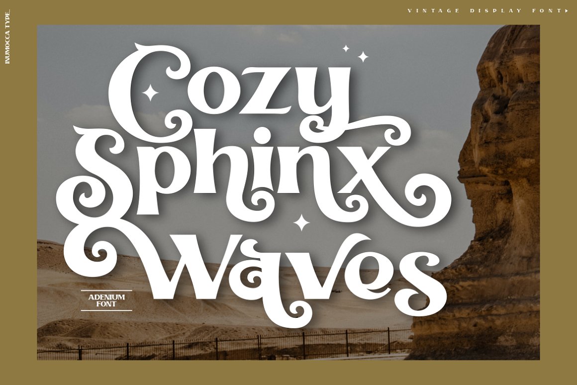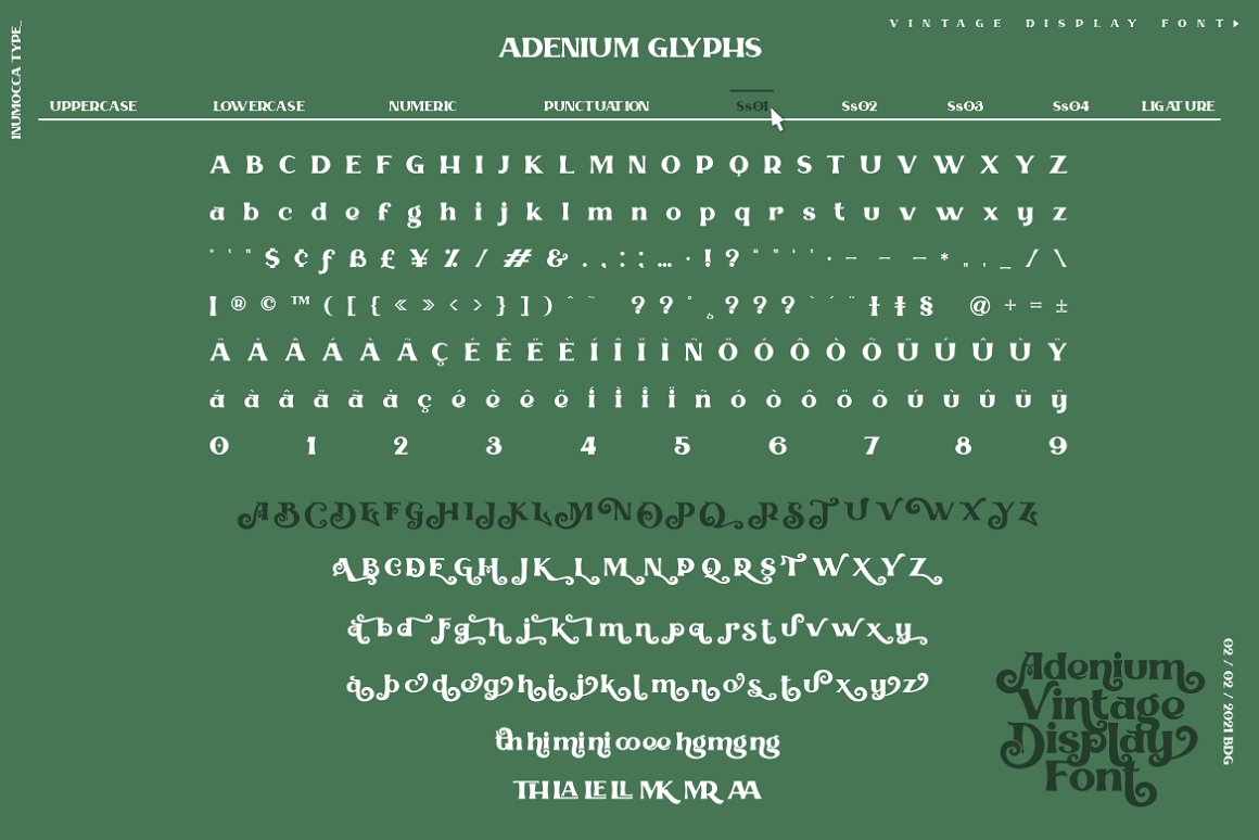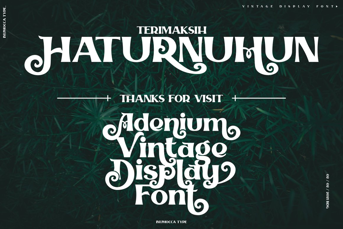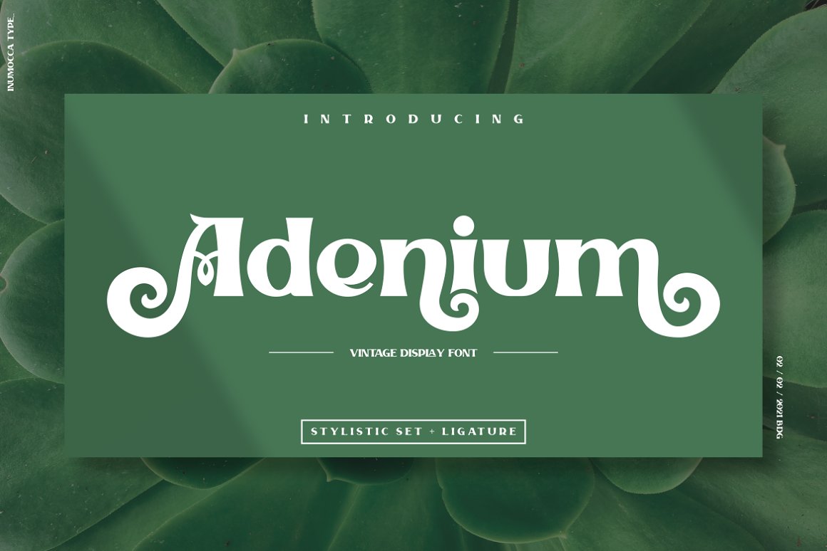 Adenium Typeface inspired by the Shape of the Adenium Tree, Vintage Display typeface , Classic Taste with some Curly and Curved its Great flexible typeface. unique Stylictic Set and Beautiful Ligature, Really playful typeface to covering your Project, like Lettering, Website Interface, Bookcover or Book Content, Magazine cover, Branding, Poster, wedding invitations, Quotes Lettering, Logos, and more your project design.