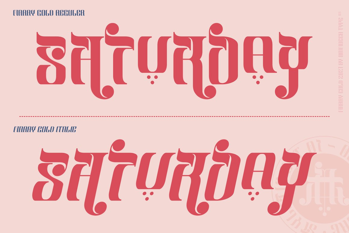 MARRY GOLD is A Retro Display Typeface, Come from 70s Style. The Typeface comes with Stylistic Set and Ligature Combinations Exellent typeface to use for covering your Project, like Branding, Movie Title, Headline Letter, Bookcover or Book Content, Magazine cover, Poster, Quotes Lettering, Logos, and more your project design.