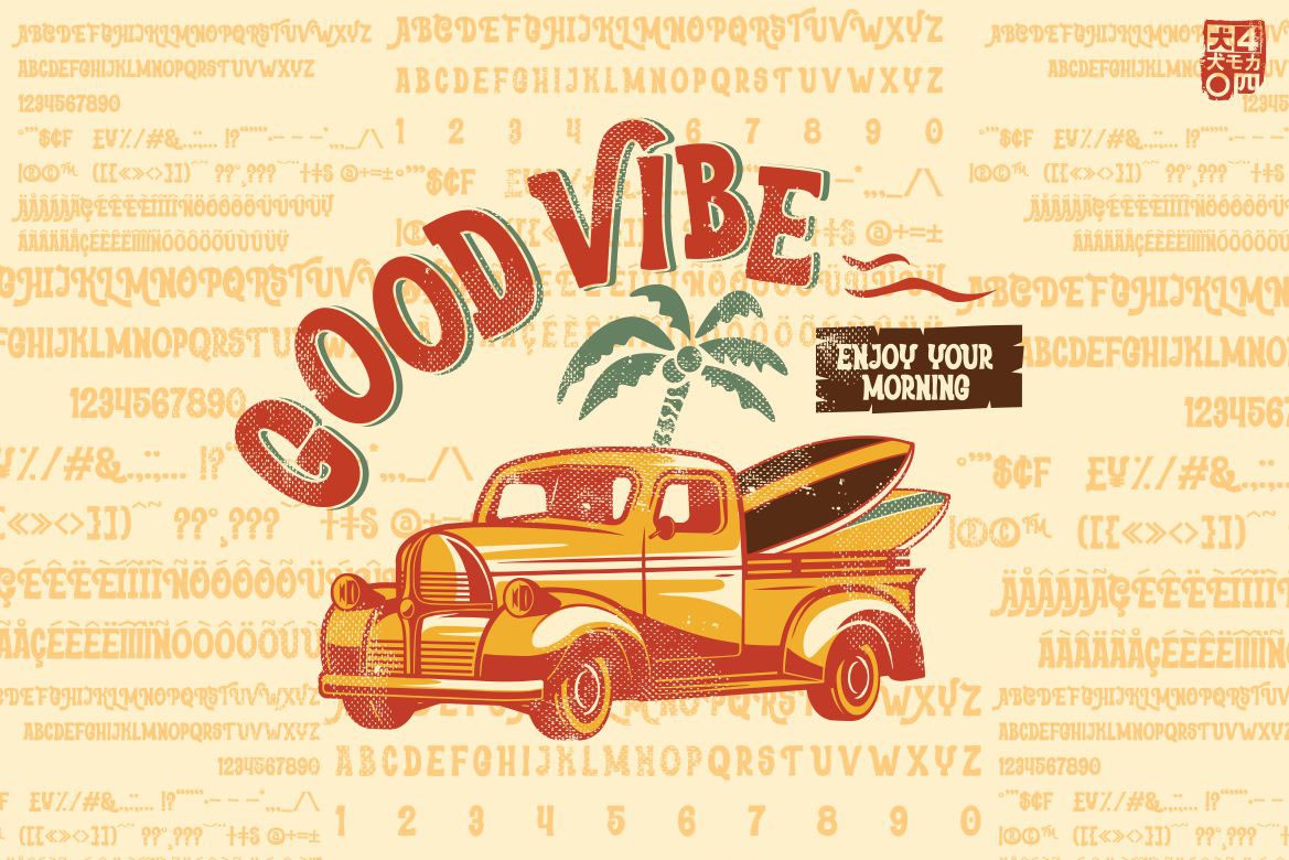 Morning Beach the fancy font ,inspiration from psychedelic style and from the kids writting with unique glyphs. Morning Beach playfull will look so good on your poster, Blog, Website, tshirt and any other fun projects you are working on.
