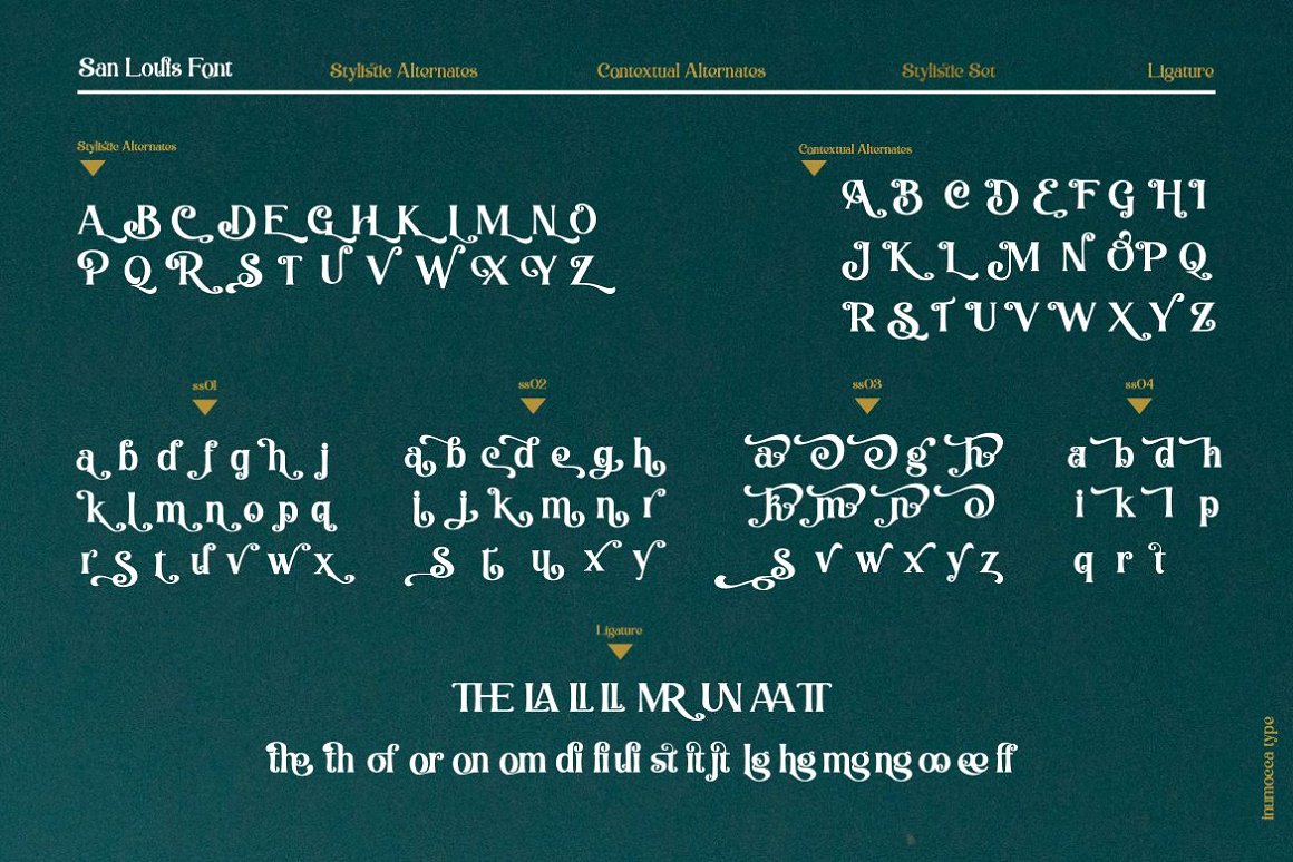 San Louis is an Elegant Serif typeface , Modern , Classy and Glamour Worlds. Awesome Stylictic Set, Beautiful Ligature and unique contecttual alternates, stylistic alternates. Really playful typeface to covering your Project, like Lettering, Website Interface, Magazine, Branding, Poster, wedding invitations, Quotes Lettering, Logos, and more your project design.
