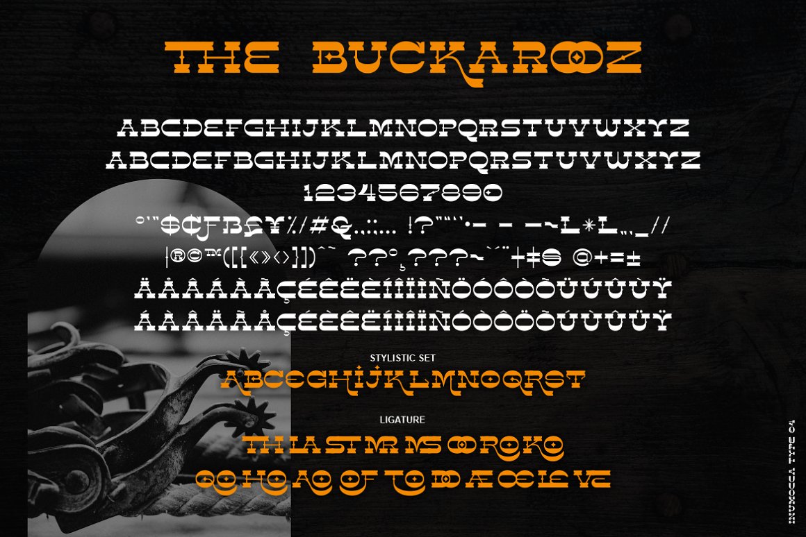 The BUCKAROOZ is A Reverse-Contrast letterform with Western Cowboy Atmosphere. They were particularly common in the nineteenth century, and I want to Presenting the letterform style of that era. The Typeface comes with Stylistic Set and Ligature Combinations Exellent typeface to use for covering your Project, like Branding, Movie Title, Headline Letter, Bookcover or Book Content, Magazine cover, Poster, Quotes Lettering, Logos, and more your project design.