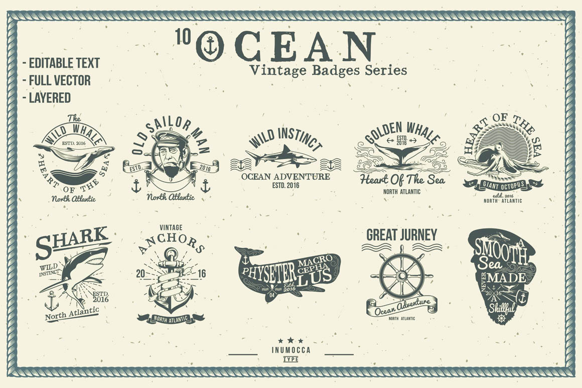 10 vintage style vector templates with ocean theme.