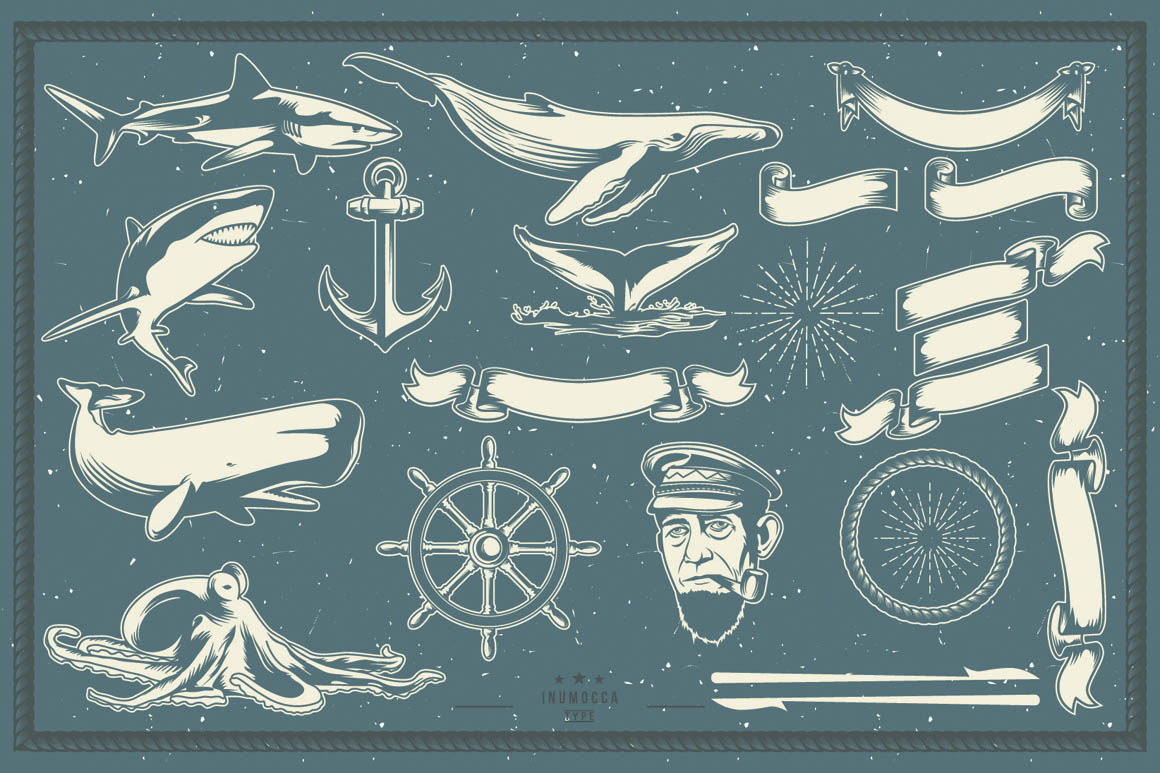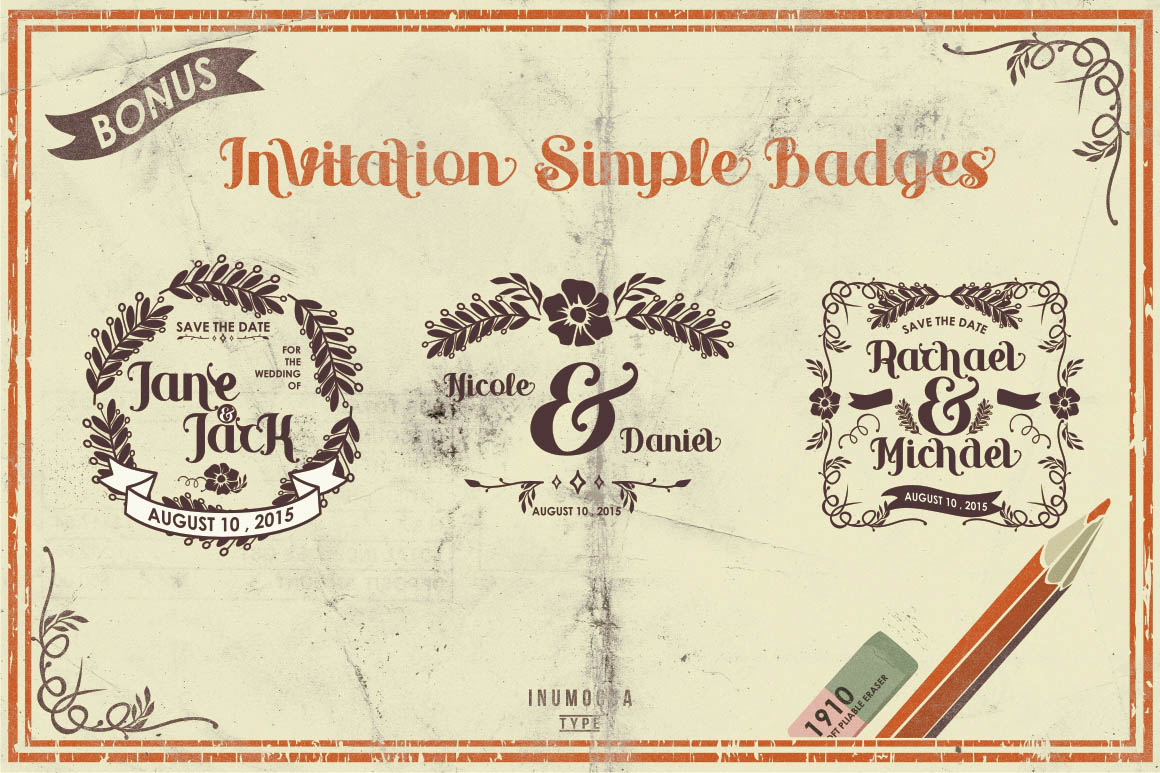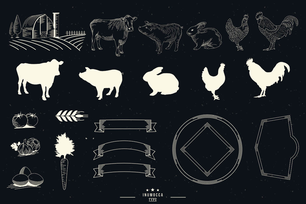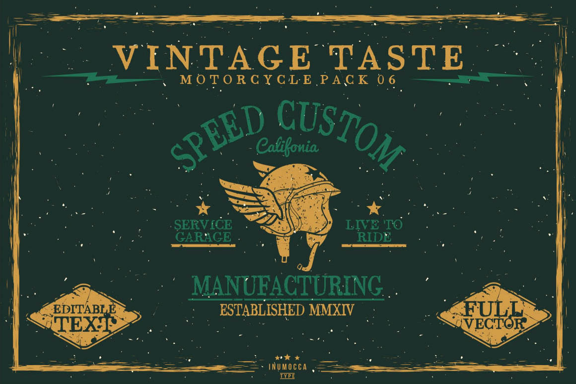 Unique collection of vinatge vector badges, handcrafted shapes and amazing custom fonts from Inumoccatype. Enjoy and good luck with your new vintage style artowrks 😉