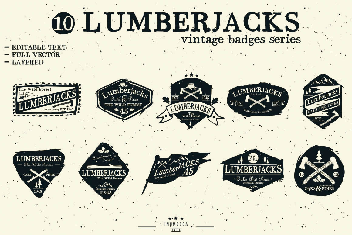 10 vintage style vector templates with lumberjack theme.