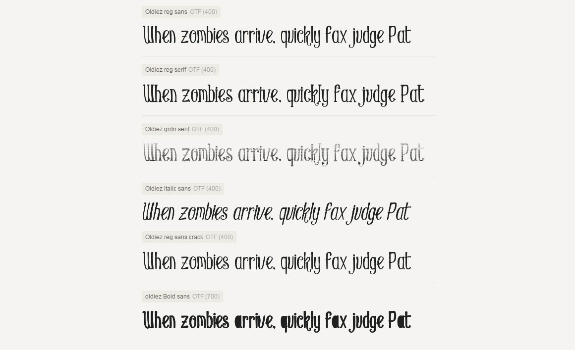 7. Oldiez Font Family + bonus from Inumoccatype
