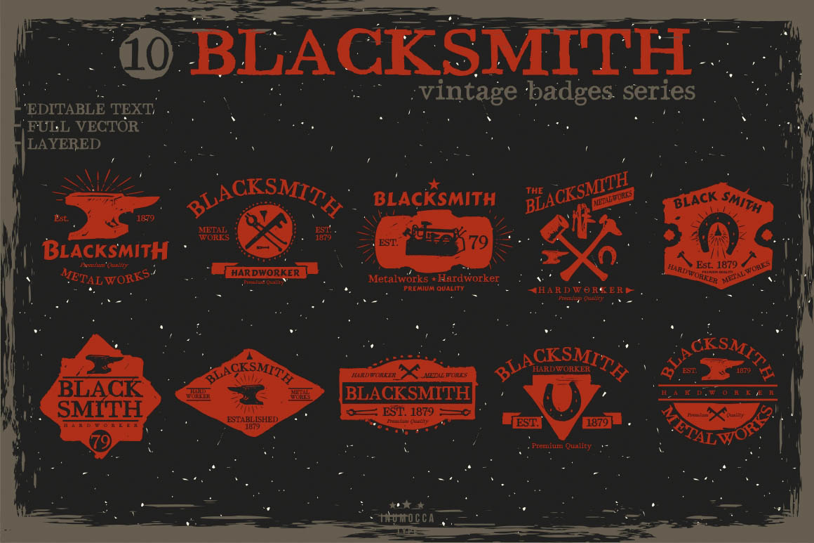 10 vintage style vector templates with blacksmith theme.