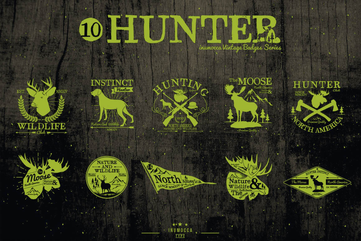 10 vintage style vector templates with hunter theme.