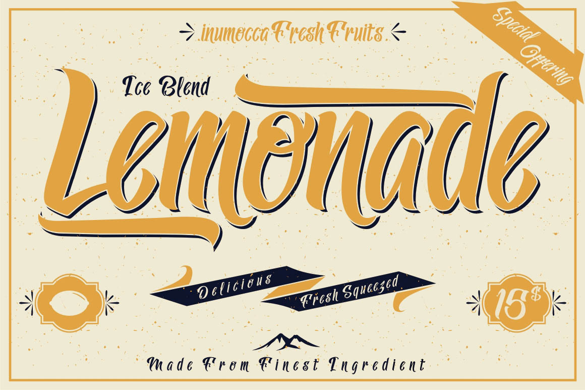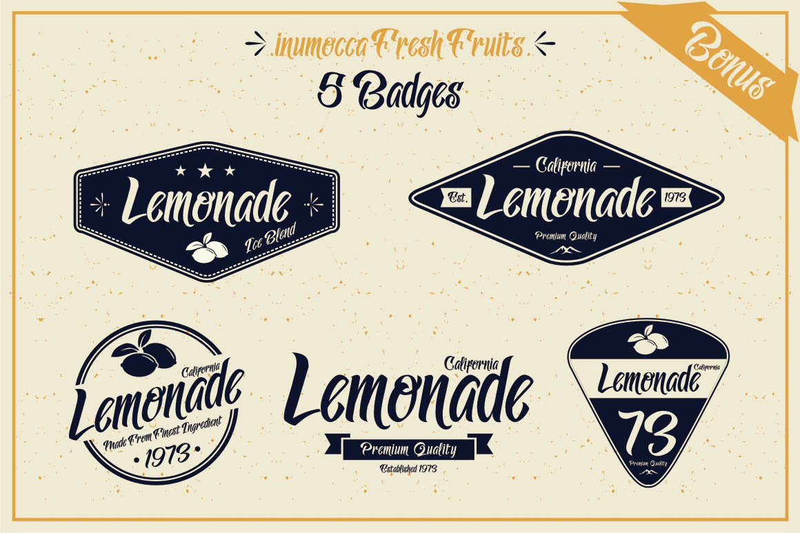 5. Lemonade font with 5 Badges Bonus from Inumoccatype