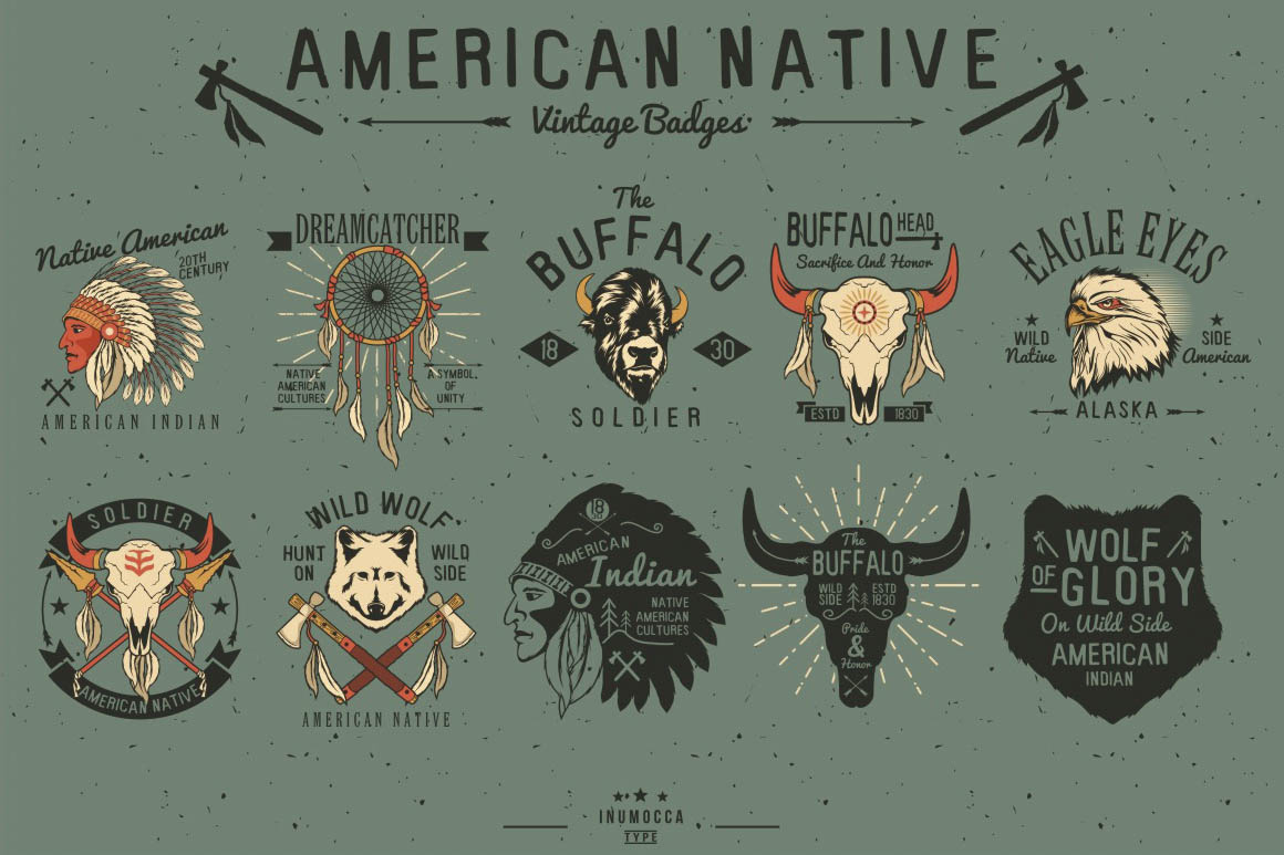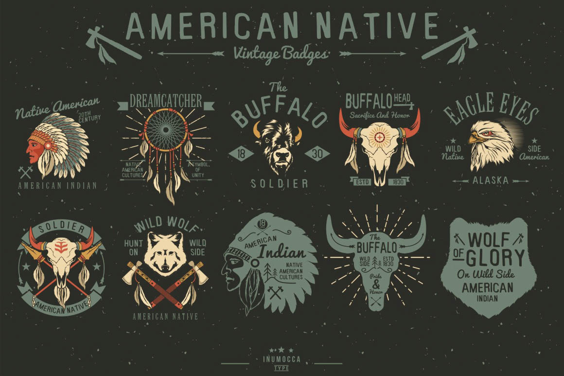 8. Native American Vintage Badges from Inumoccatype