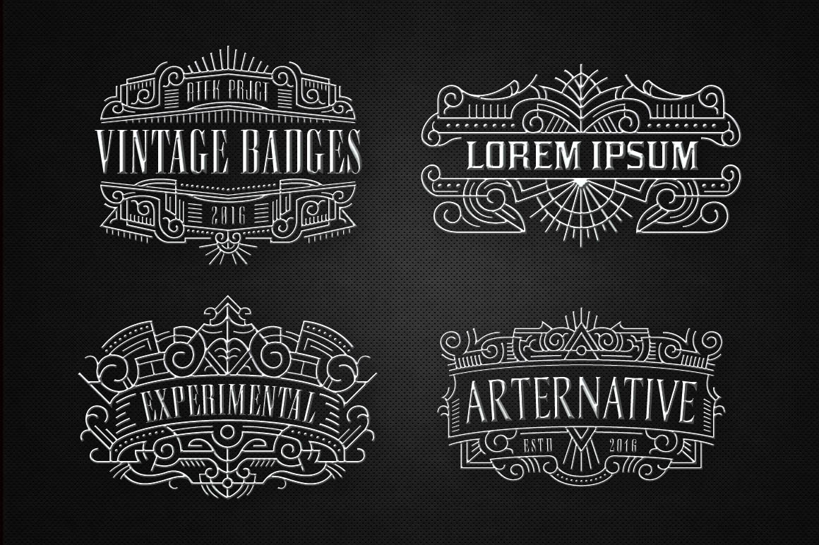 7 retro or vintage style vector graphic sets with frames & badges!