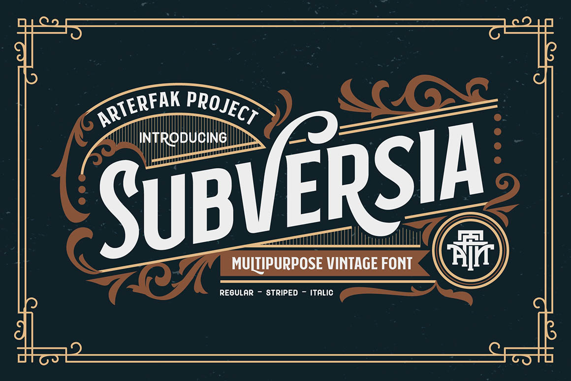 Vintage Style Fonts & Graphics from Arterfak contains 15 retro or vintage style display font sets with 45 font versions and extra vector graphics & 7 retro or vintage style vector graphic sets with frames & badges! Don’t miss this vintage style typography & graphics bundle 😉