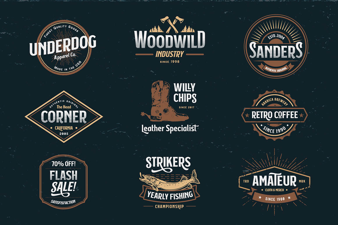 - 15 retro or vintage style display font sets with 45 font versions and extra vector graphics!