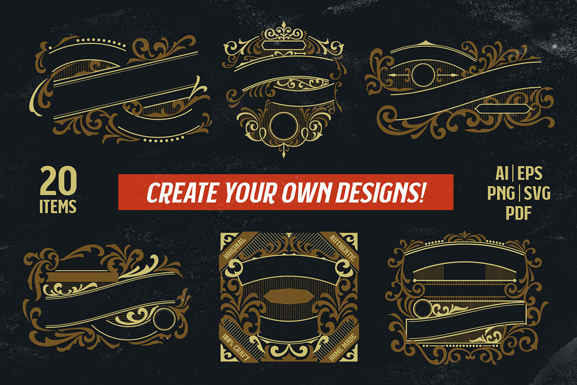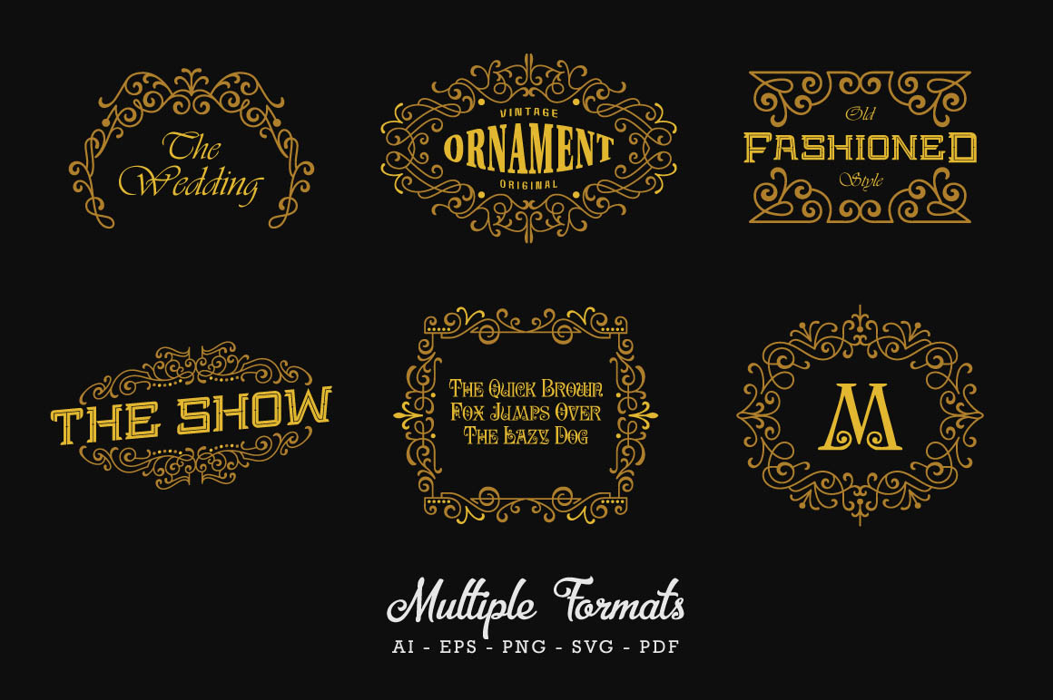 All these frames, badges & elements are in various file formats – EPS, SVG, PNG & JPG