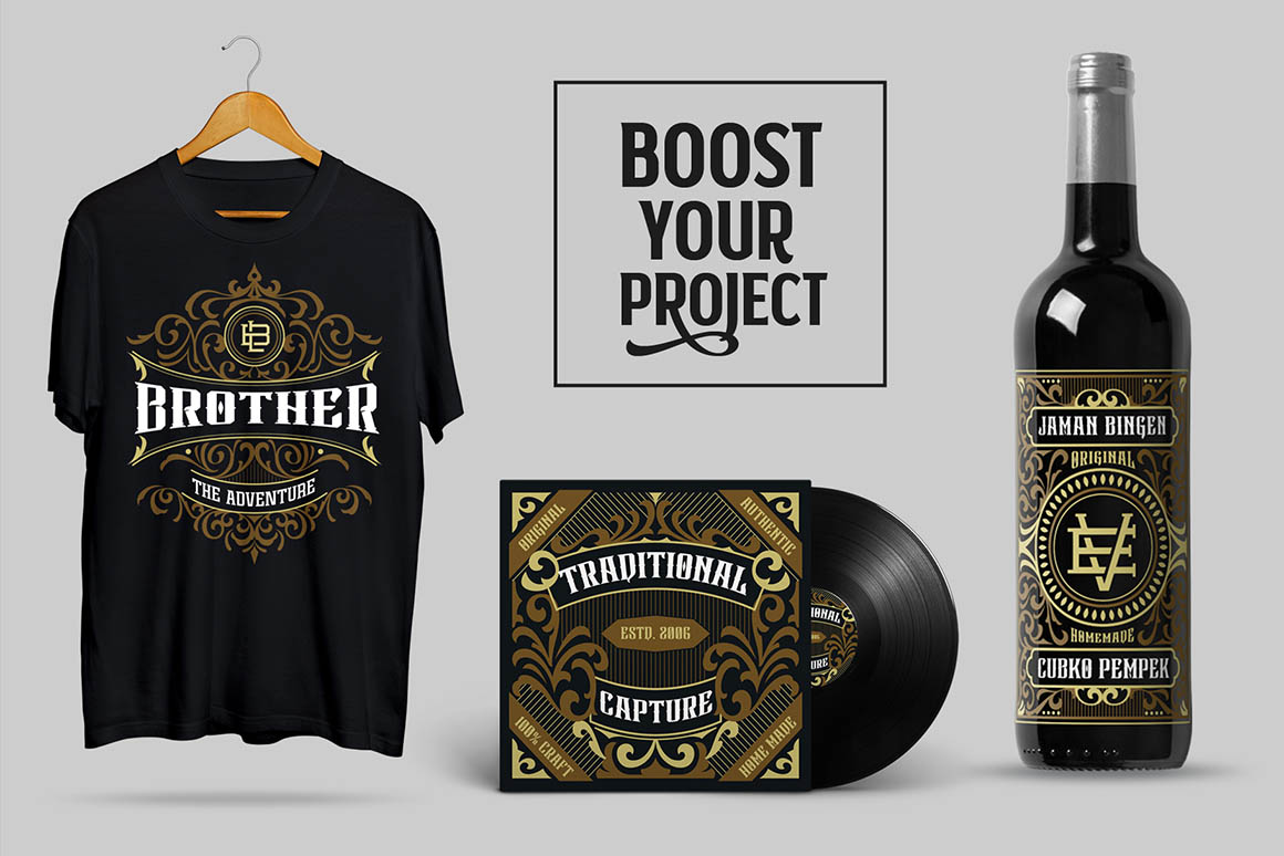 Brand new retro or vintage style bundle with 45 display fonts & 7 vector graphic sets. All these fonts & graphics are very unique so you can use it for any kind of creative projects 😉