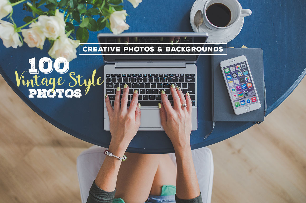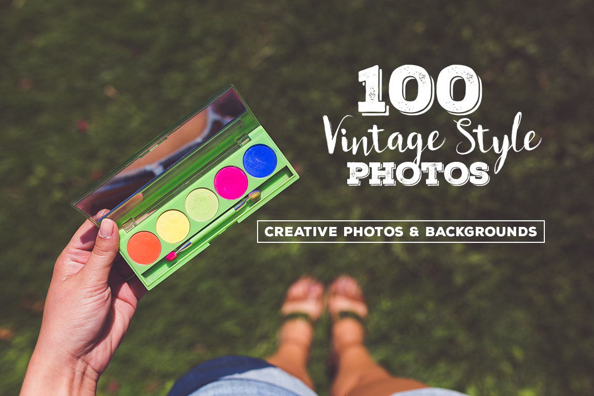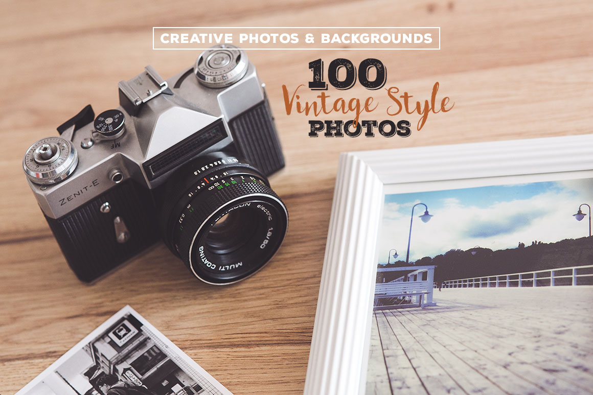 100 hi-res ( 60 photos – 5472×3648, 240dpi, 40 photos – little bit smaller resolutions ) photos! All photos are in retro/vintage style. Great for presentation of your new product or font, web or print projects…