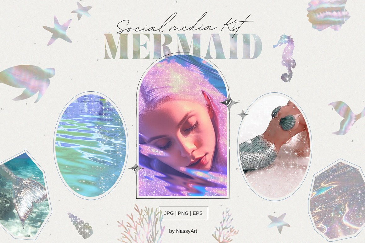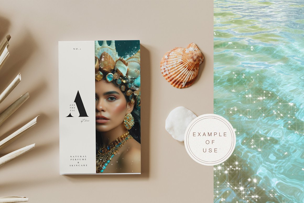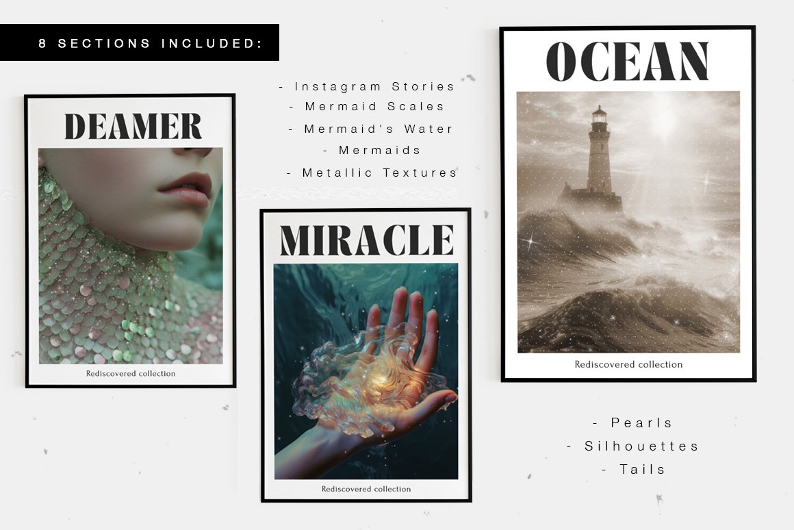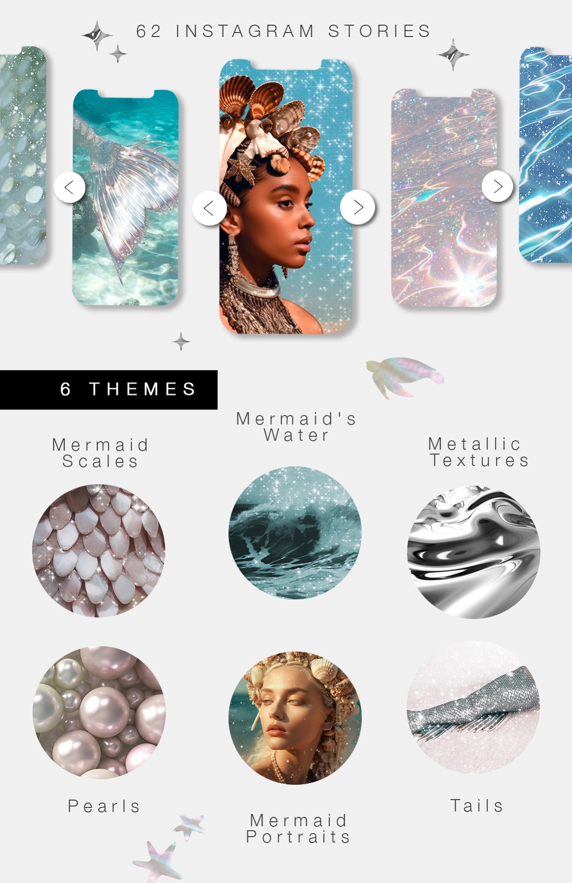 Mermaid Fairytale Sparkle Kit – an aesthetic collection of Mermaid Vibes with sparkles including pearls, miracle water textures, Mermaid scales, Metallic Textures, Social Media Ready-to-use stories, Mermaid Theme Icons for bringing or logo creating etc.