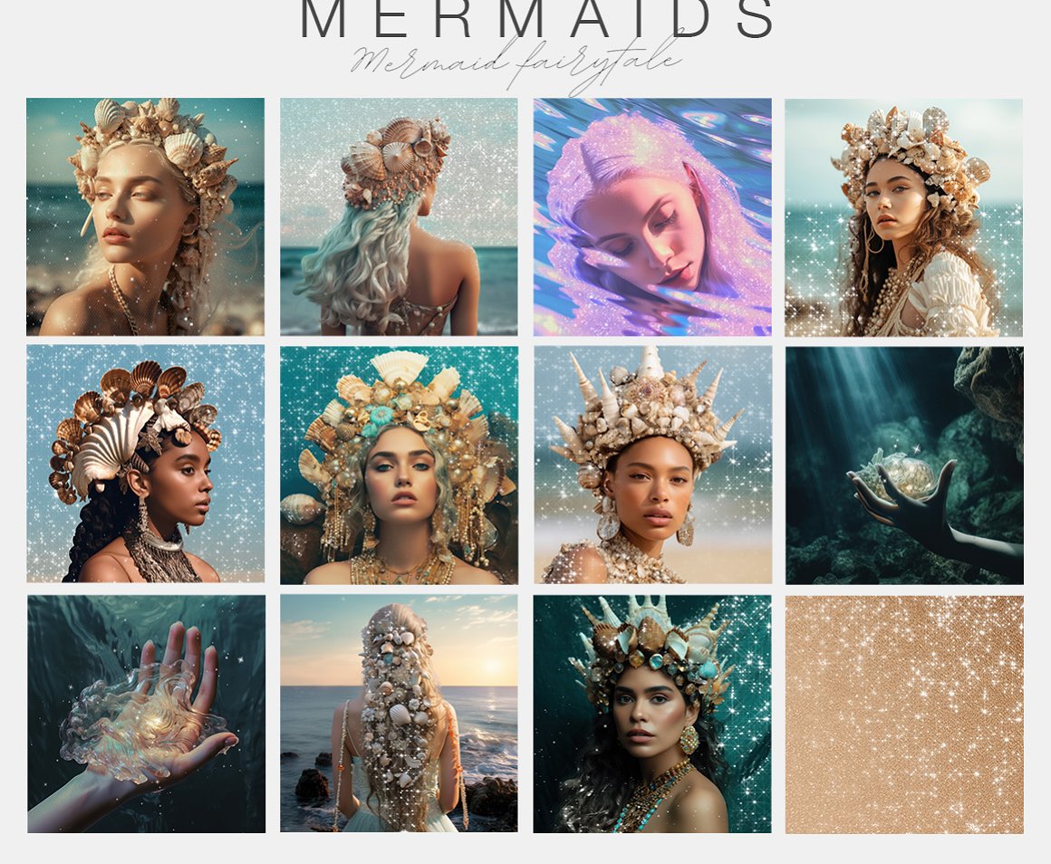 - 11 Mermaid Portraits (JPG: 4100×4100 px, 300dpi)