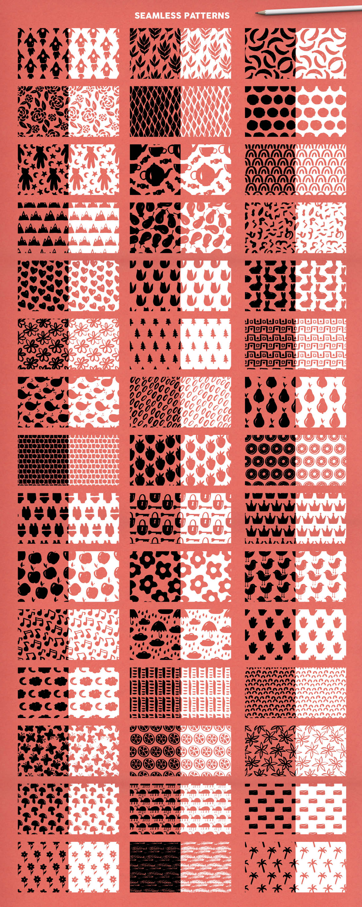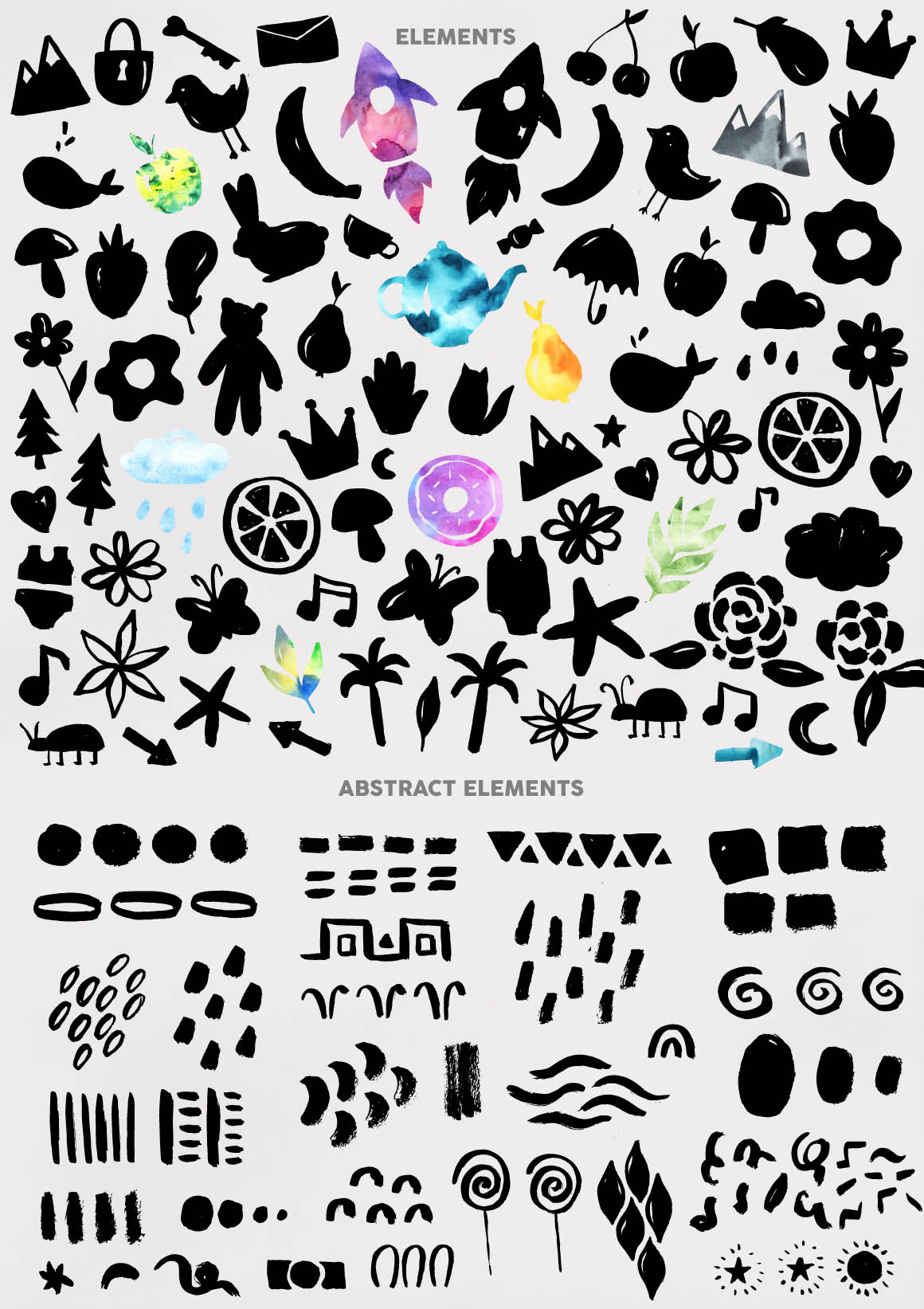 - Lot of illustrations, patterns, textures, backgrounds, frames, cards and more…