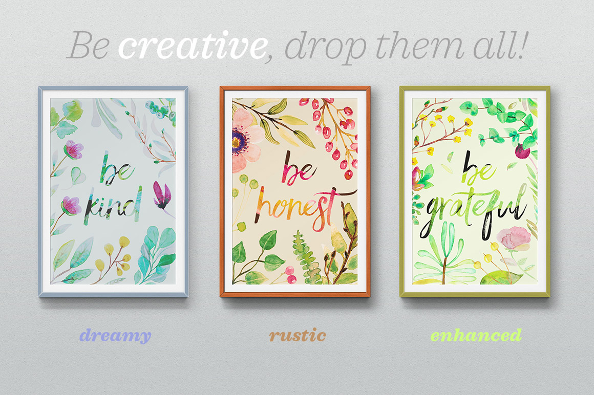 Normally, these 3 watercolor bundles would cost you $60 (without extended licenses), but for a limited time only, you can get this unique collection for $7!