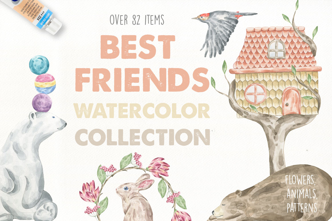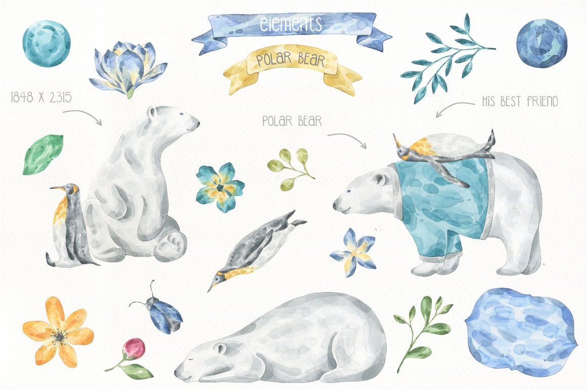 - WATERCOLOR OBJECTS [ It’s 72 watercolor elements : rabbit, bears, flowers, florals, penguin and other elements ];