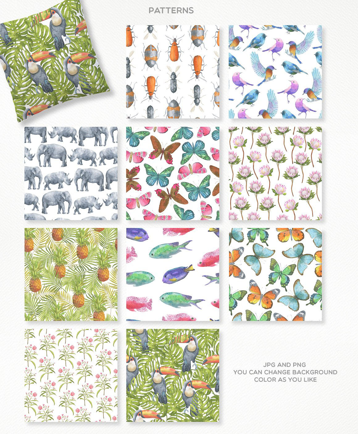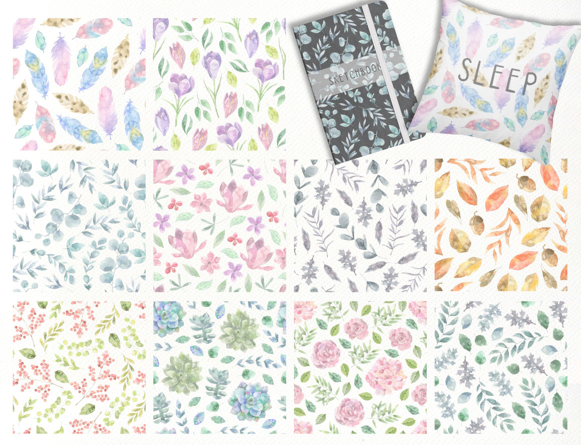 - PATTERNS [ 10 seamless watercolor patterns. Each pattern saved in 2 format: JPG and PNG with transparent background]