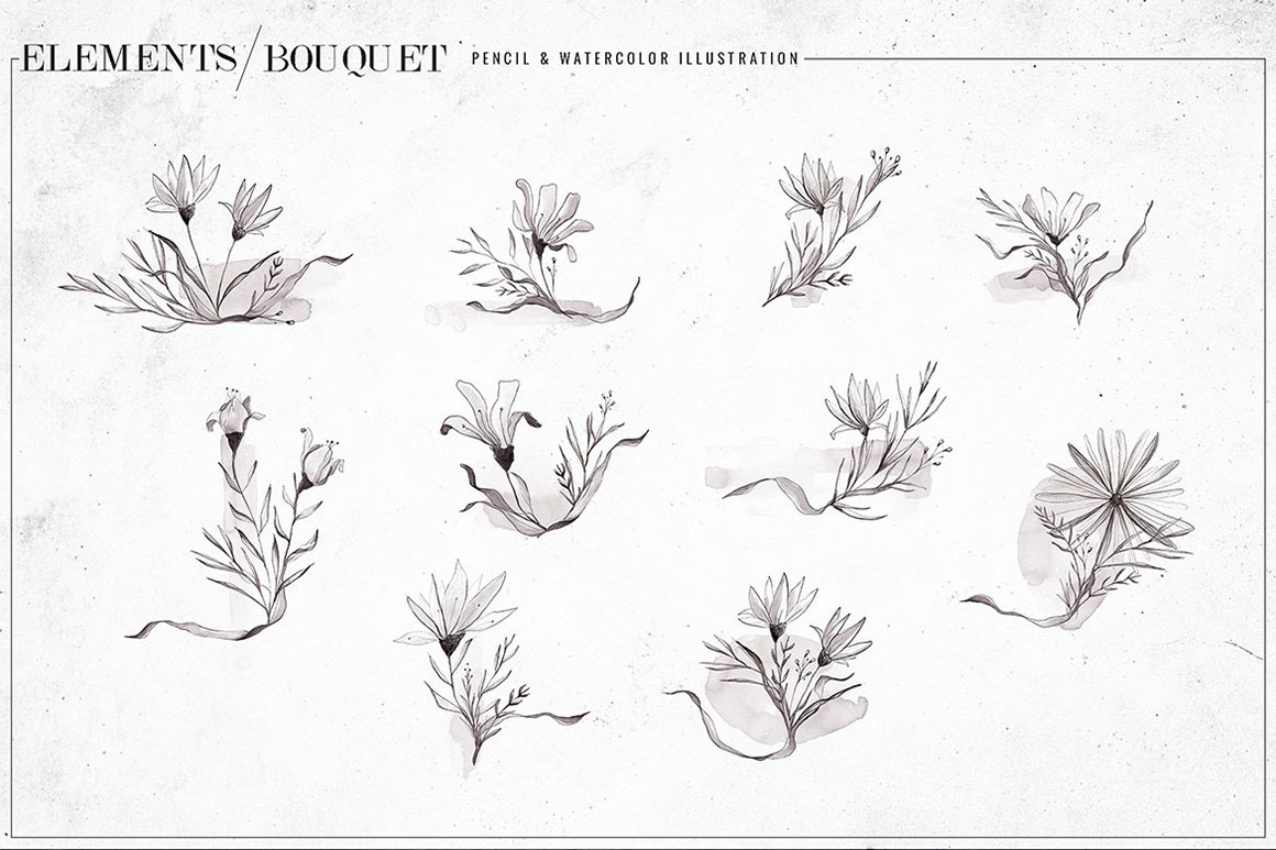 A pack of wild foliage illustration in classic watercolor style mixed with pencil texture. This would be a perfect idea for your wedding stationery in a rustic style or other design projects such as prints, logo design, branding, social media & blogging, etc. You can create a your own composition using the separate elements, or simply use the existing arrangements for a quick, beautiful design.