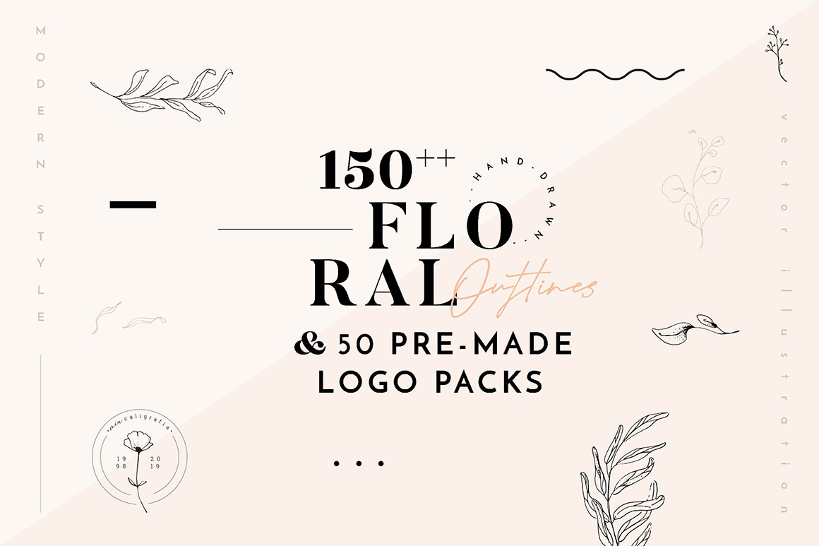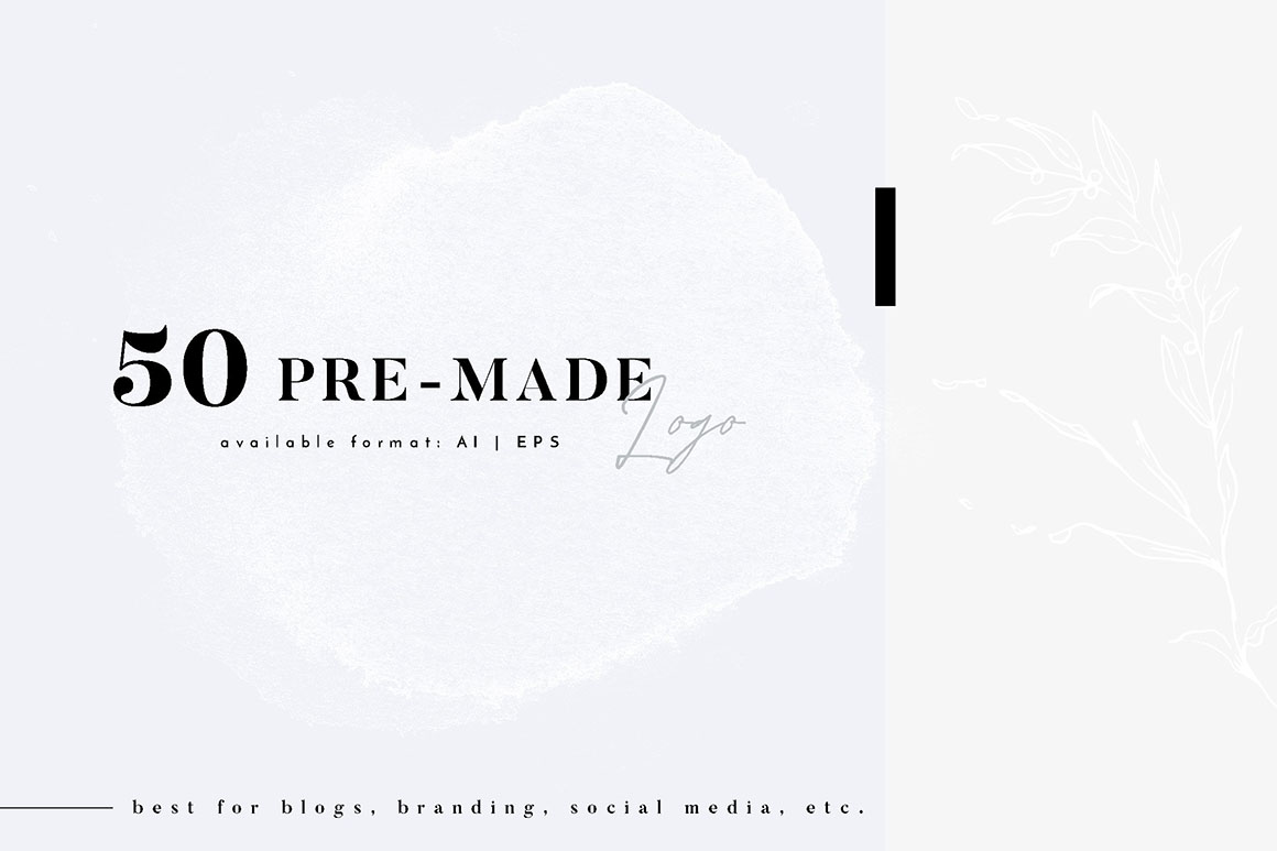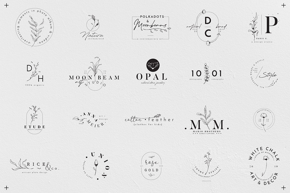 Artsy mono line hand-drawn foliage packs and 50 pre-made logo templates that you can use for a lot of purposes: wedding stationery, branding project, social media images, blogs, etc.