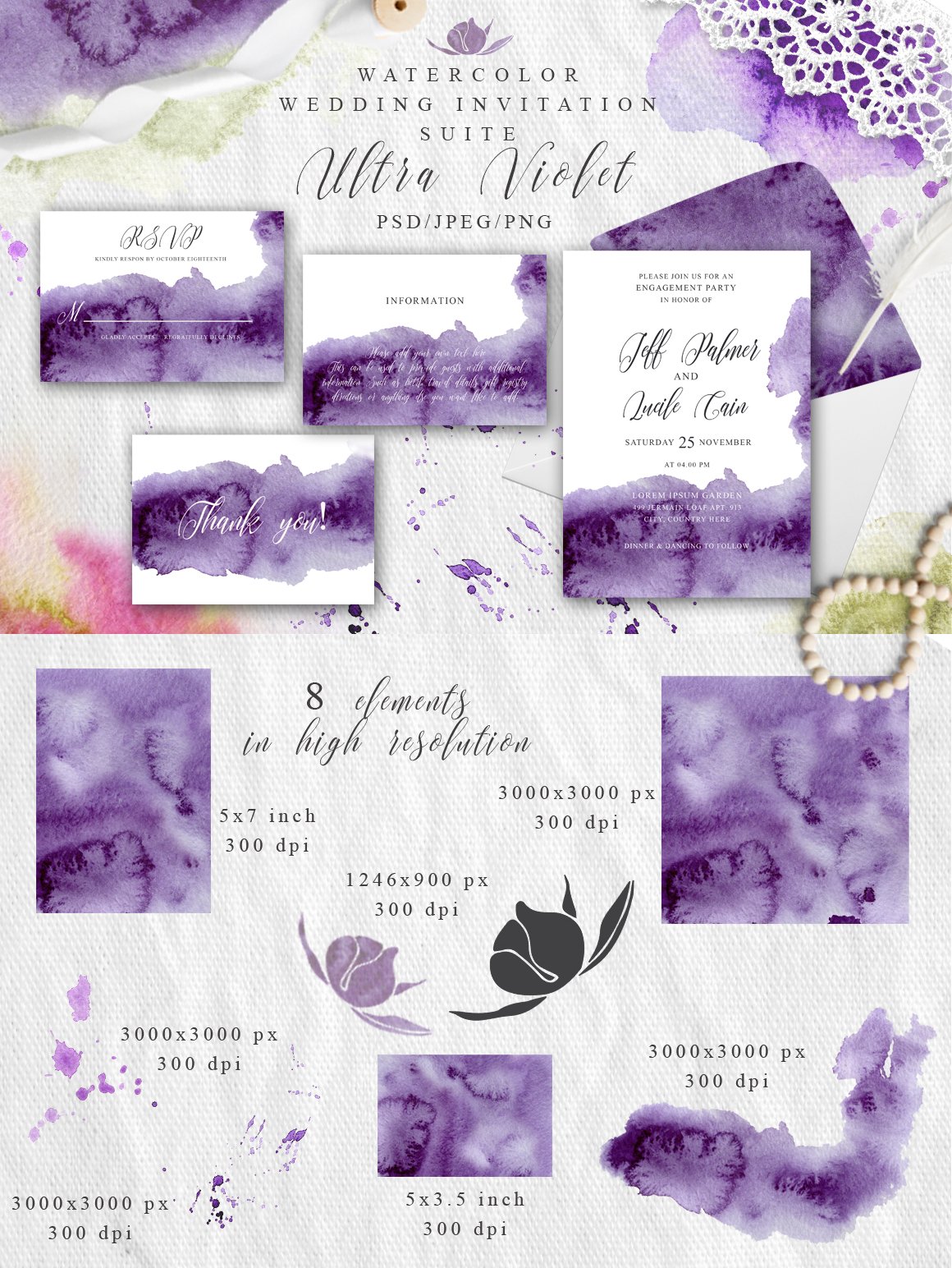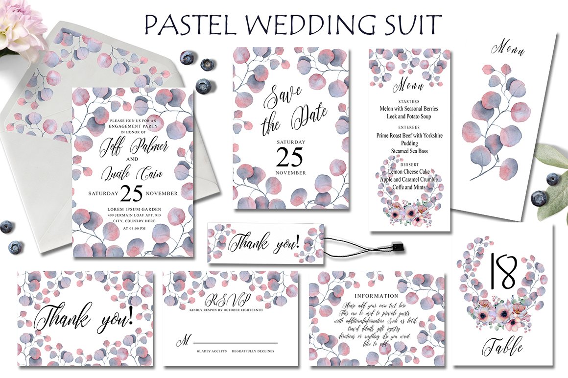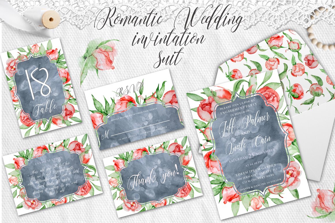 Hello Wedding Lovers! We have something really special for you – all time bestsellers wedding invitation template sets from EvgeniiasArt. Take a sneak peak at the goodies inside by scrolling all previews below!