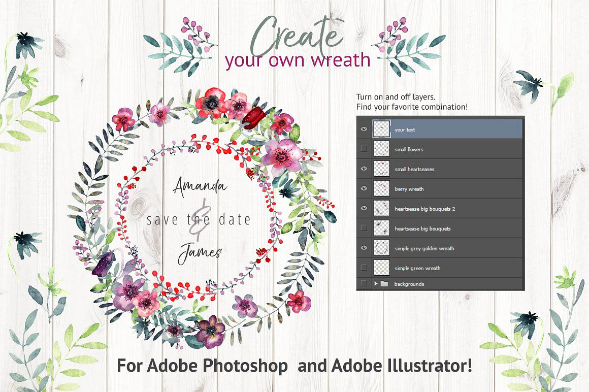 - 1 Heartsease Wreath Creator in Adobe Photoshop PSD file