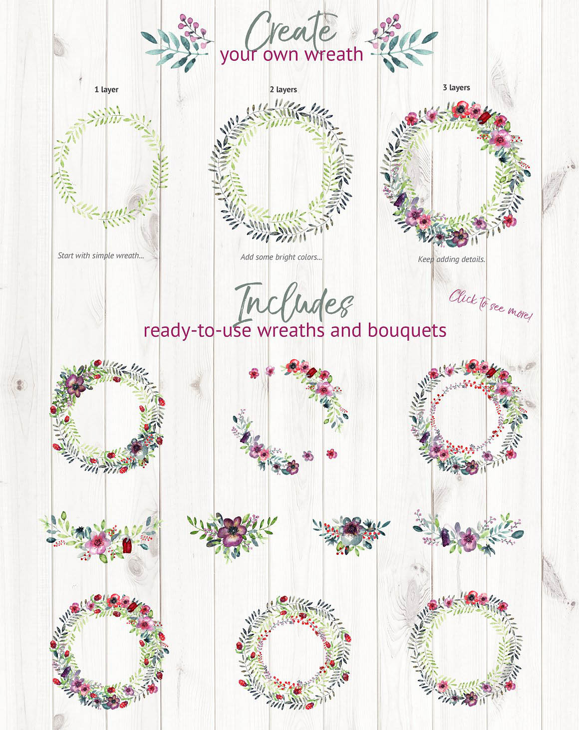 Amazing watercolor wreath creators, patterns & illustrations for your new creative projects! Enjoy 😉