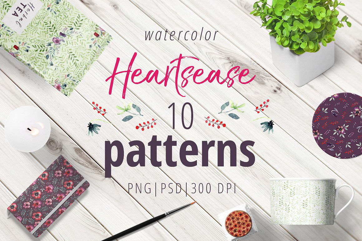I am glad to present you watercolor Heartsease pattern set. These patterns are suitable for textile and fabric design, decorative products, packaging, scrapbooking. Enjoy! 🙂