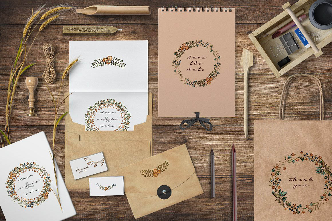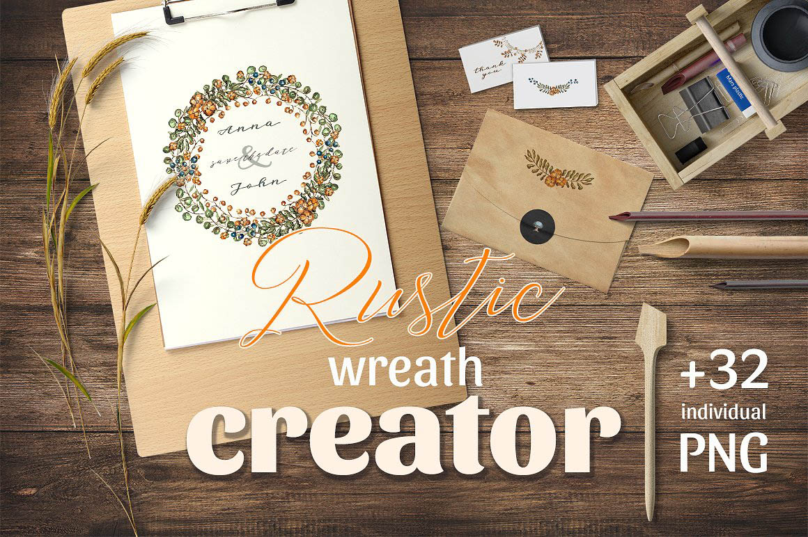 I am glad to present you Rustic Wreath Creator. It includes hand painted rustic floral elemens, created with sepia ink and watercolor. This is a great tool to create a special design in a single style. Besides, it’s fun and interesting. Find the combinations that you like!