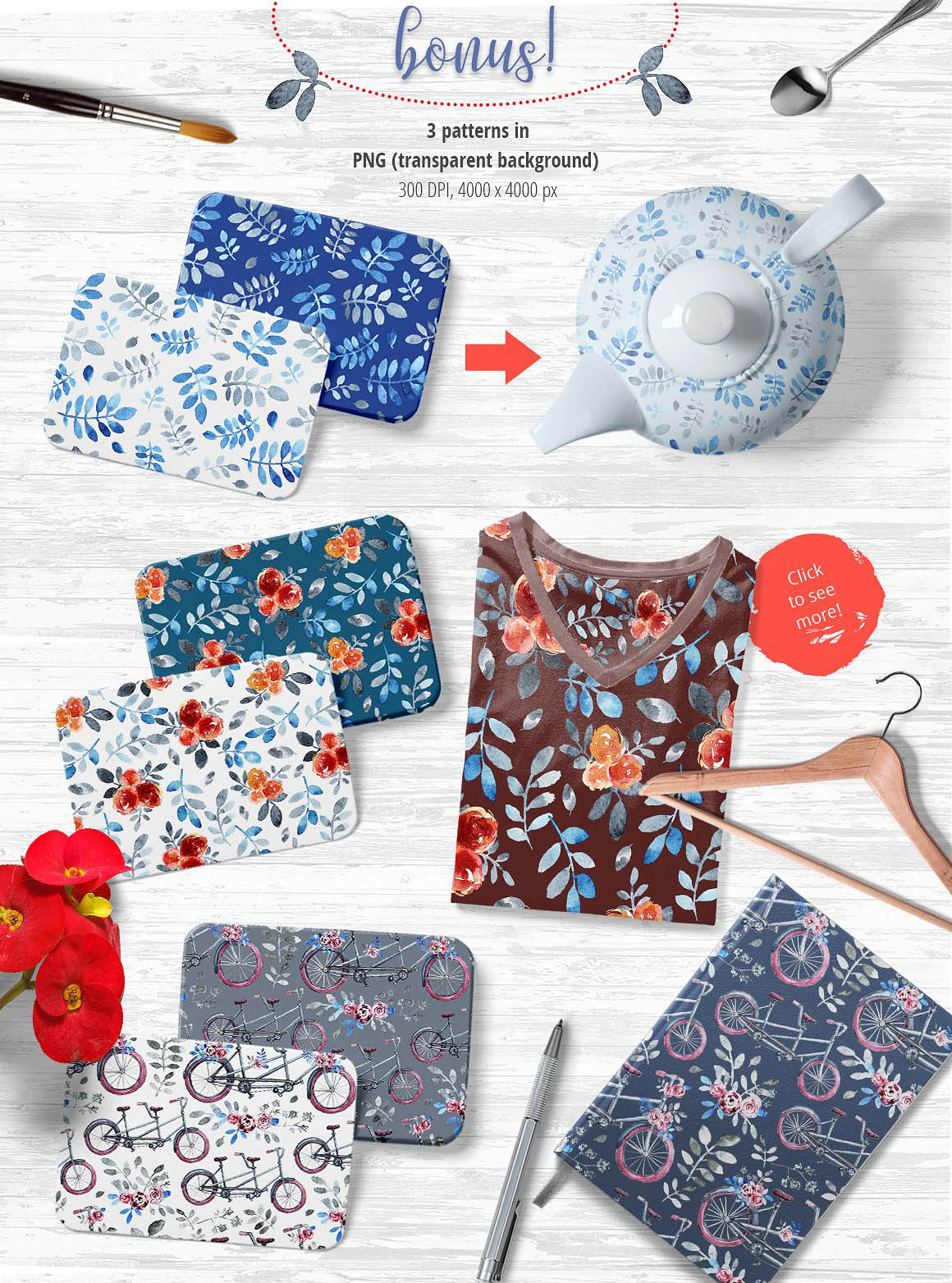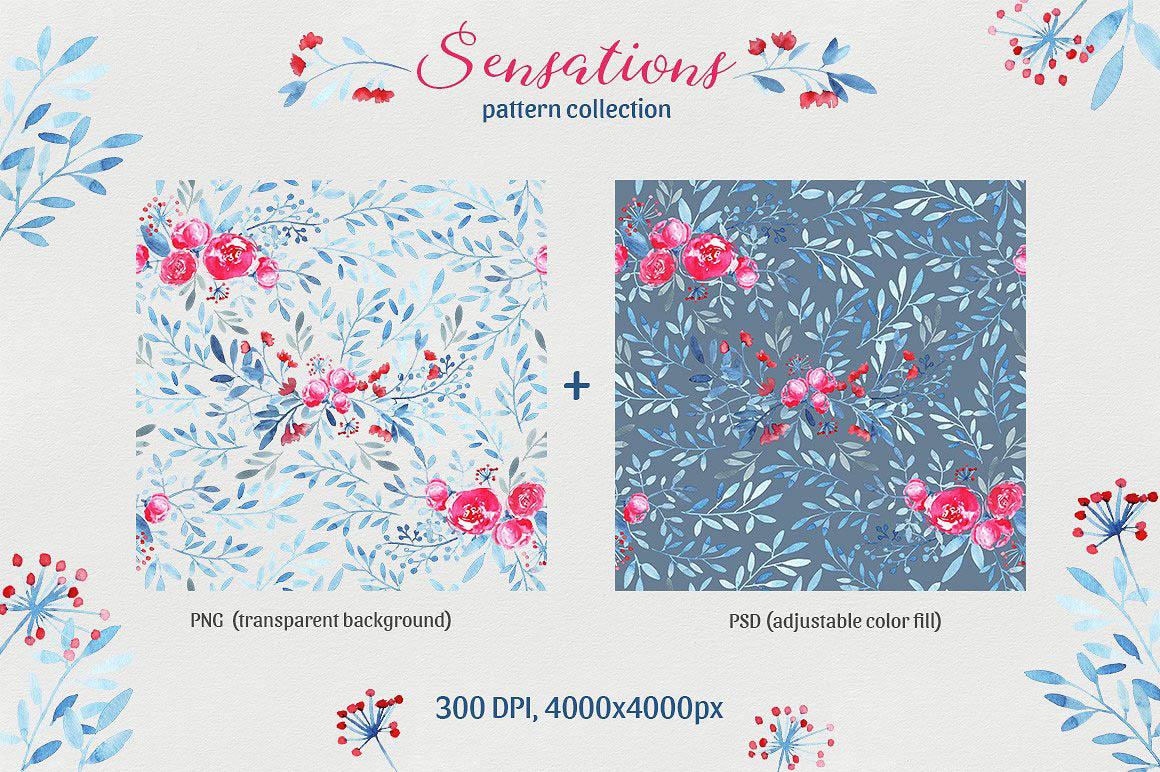 Set includes high resolution seamless patterns in 4000x4000px, 300 DPI: