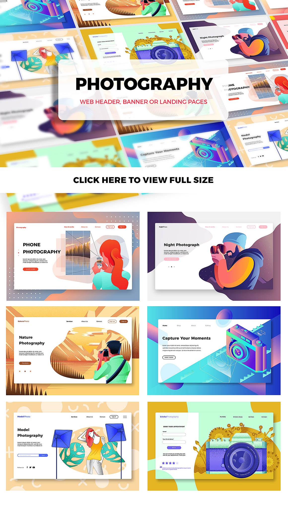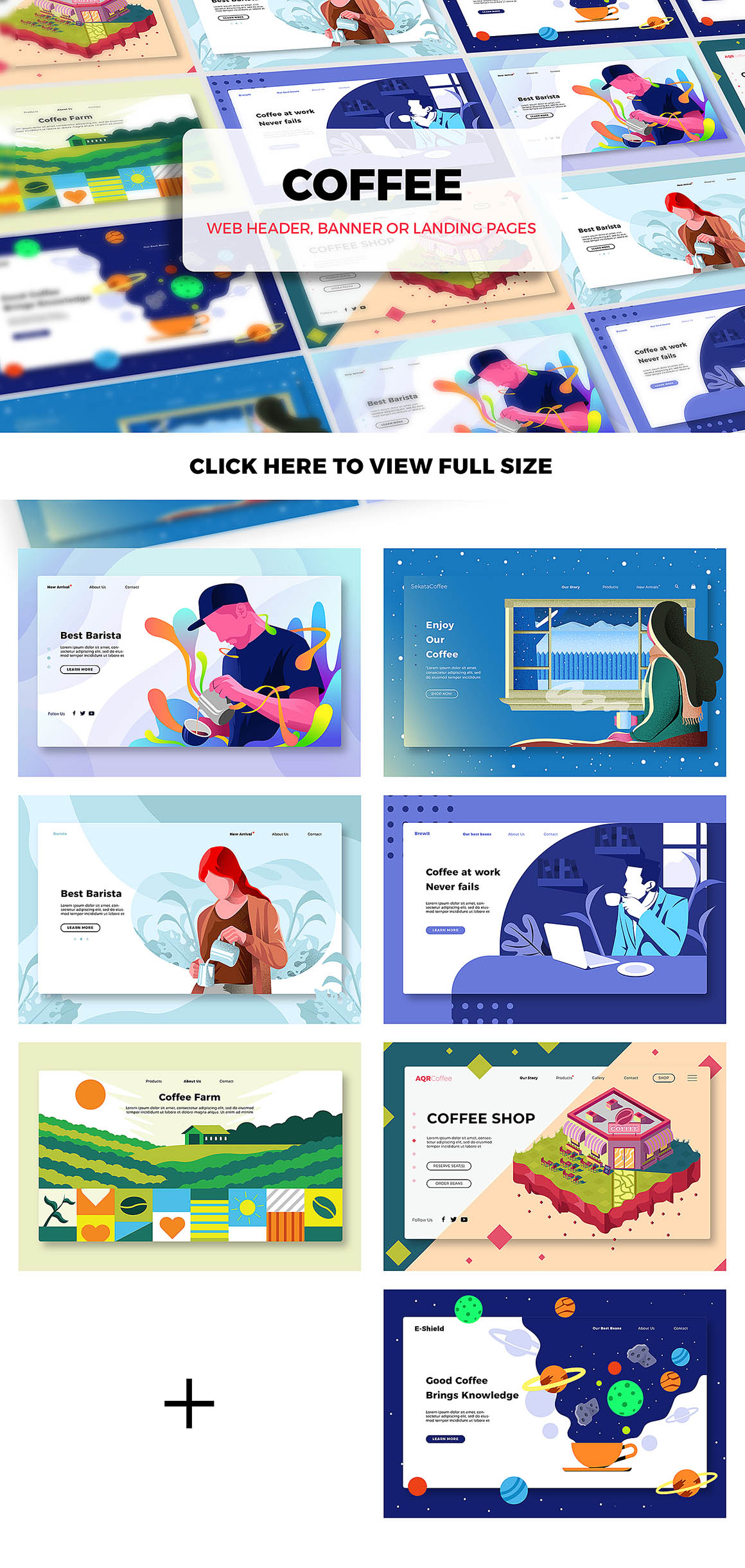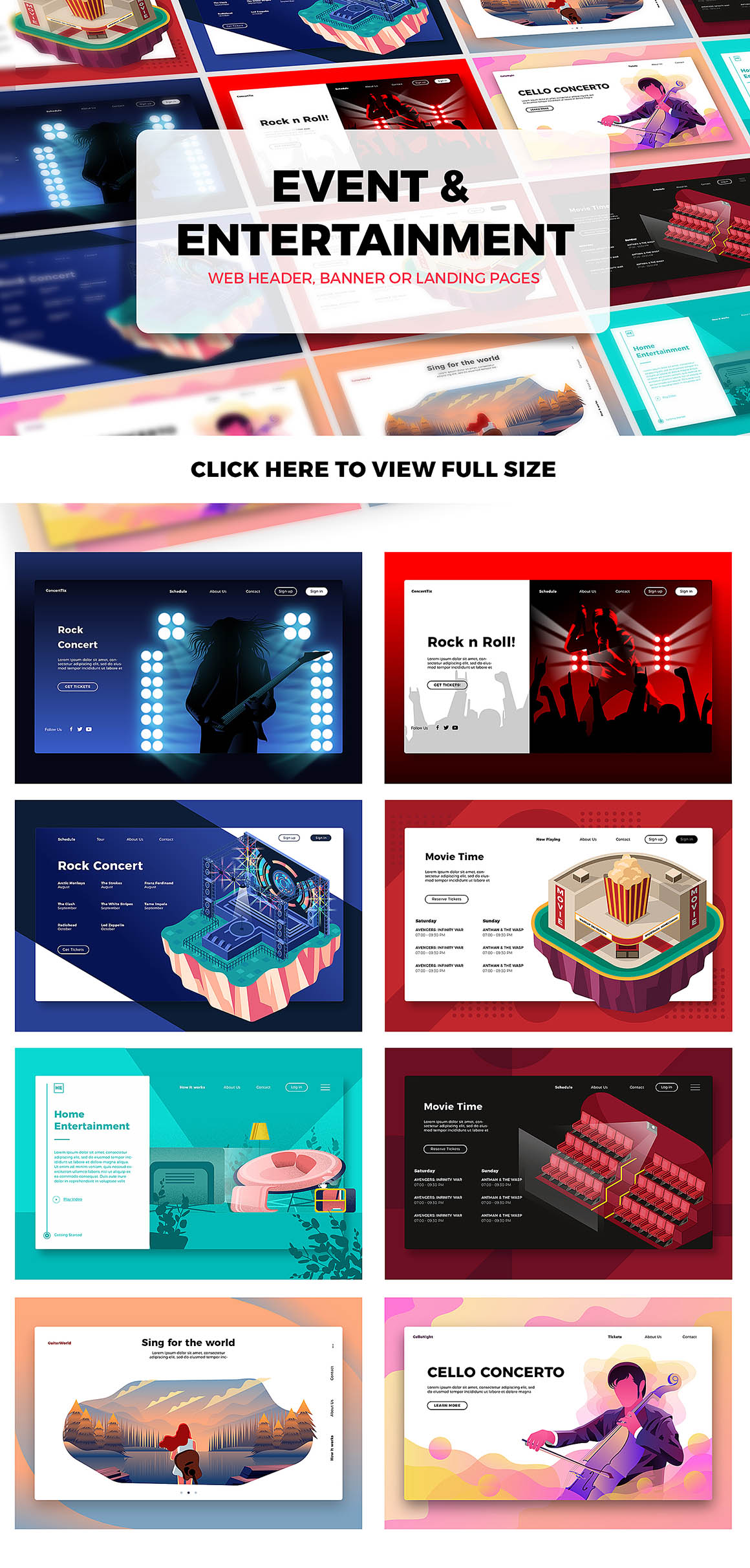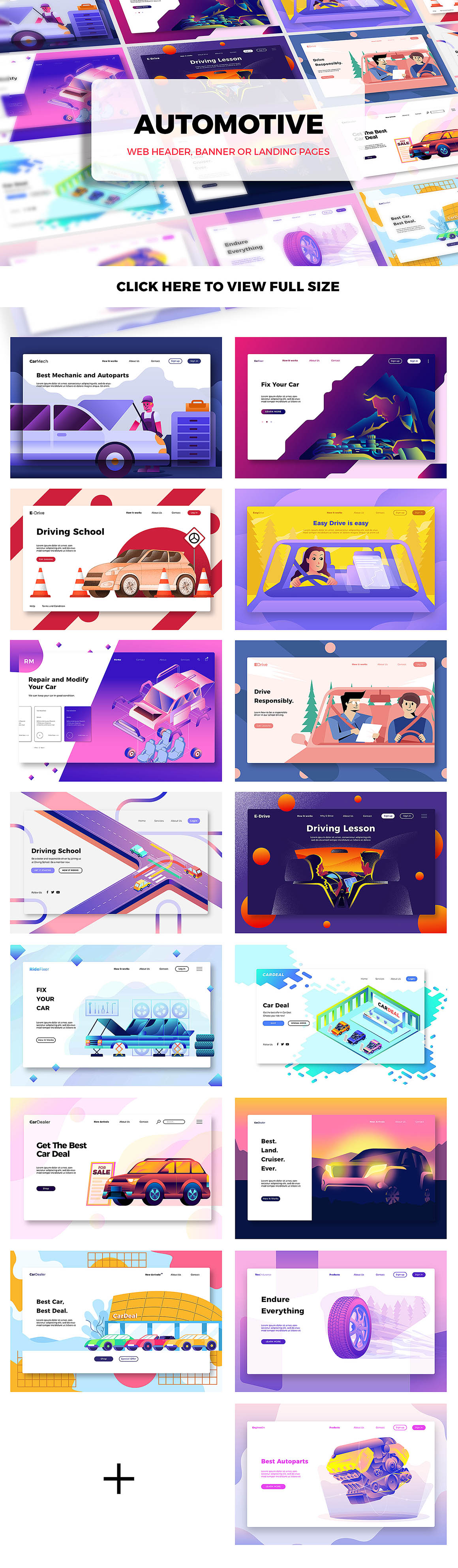 Web Headers Or Vector Illustrations from aqr Studio contains 130+ vector banners or landing pages in 14 sets! Don’t miss this vector illustration graphics bundle and create your own modern artworks for you, customers or for sale! Great for websites, promo banners, print promotion or magazine design, social media promotions, packaging…basicly any place you’ll like (web or print)!