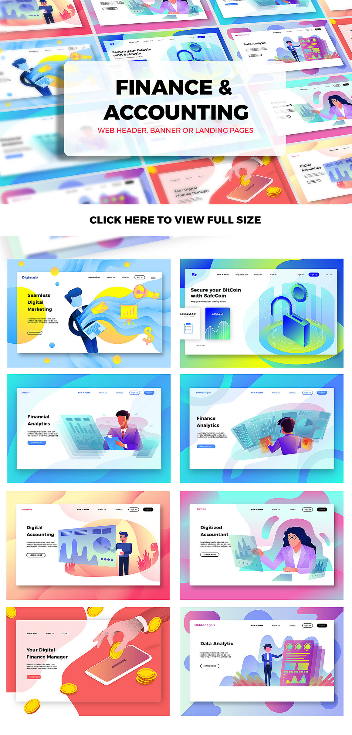 - Modern illustration bundle with 130+ vector banners or landing pages in 14 sets!