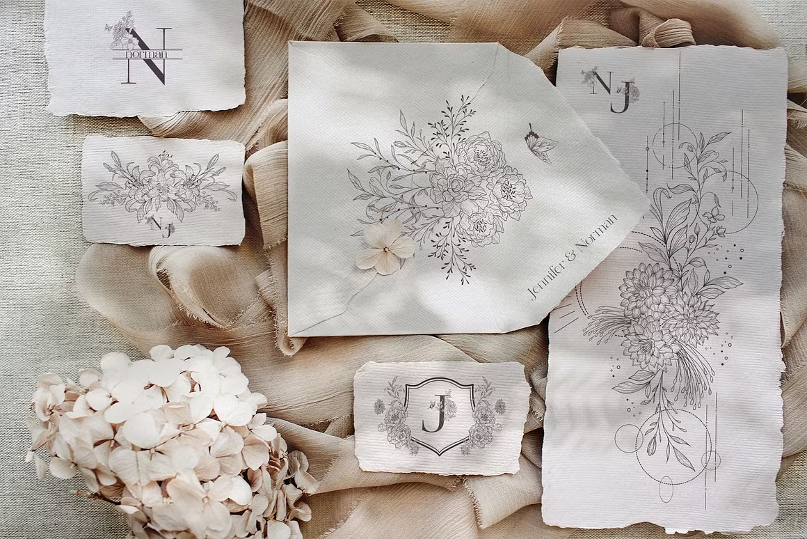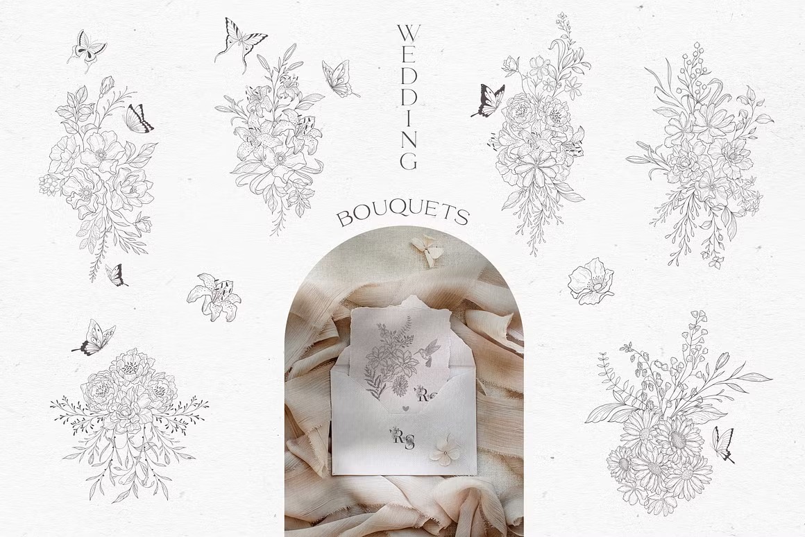 4 floral, elegant, vintage & wedding style illustration & graphics sets!