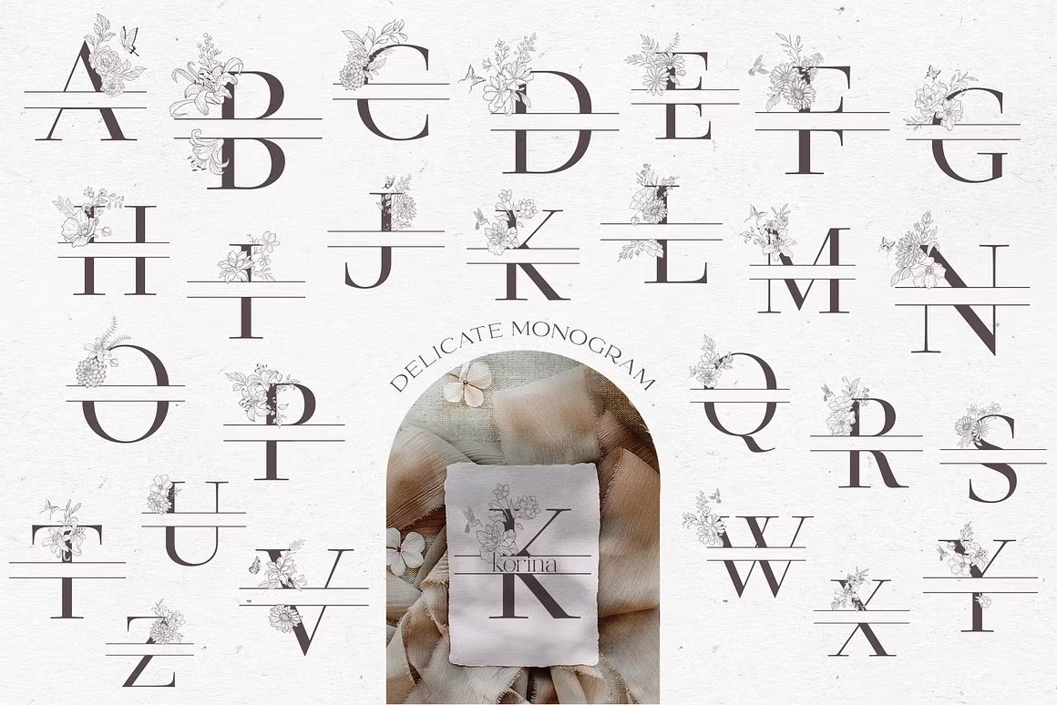 - 2 type of Monogram (each 26 letters), ~2500×3500 px, 3900x 2800px, PNG 300 dpi