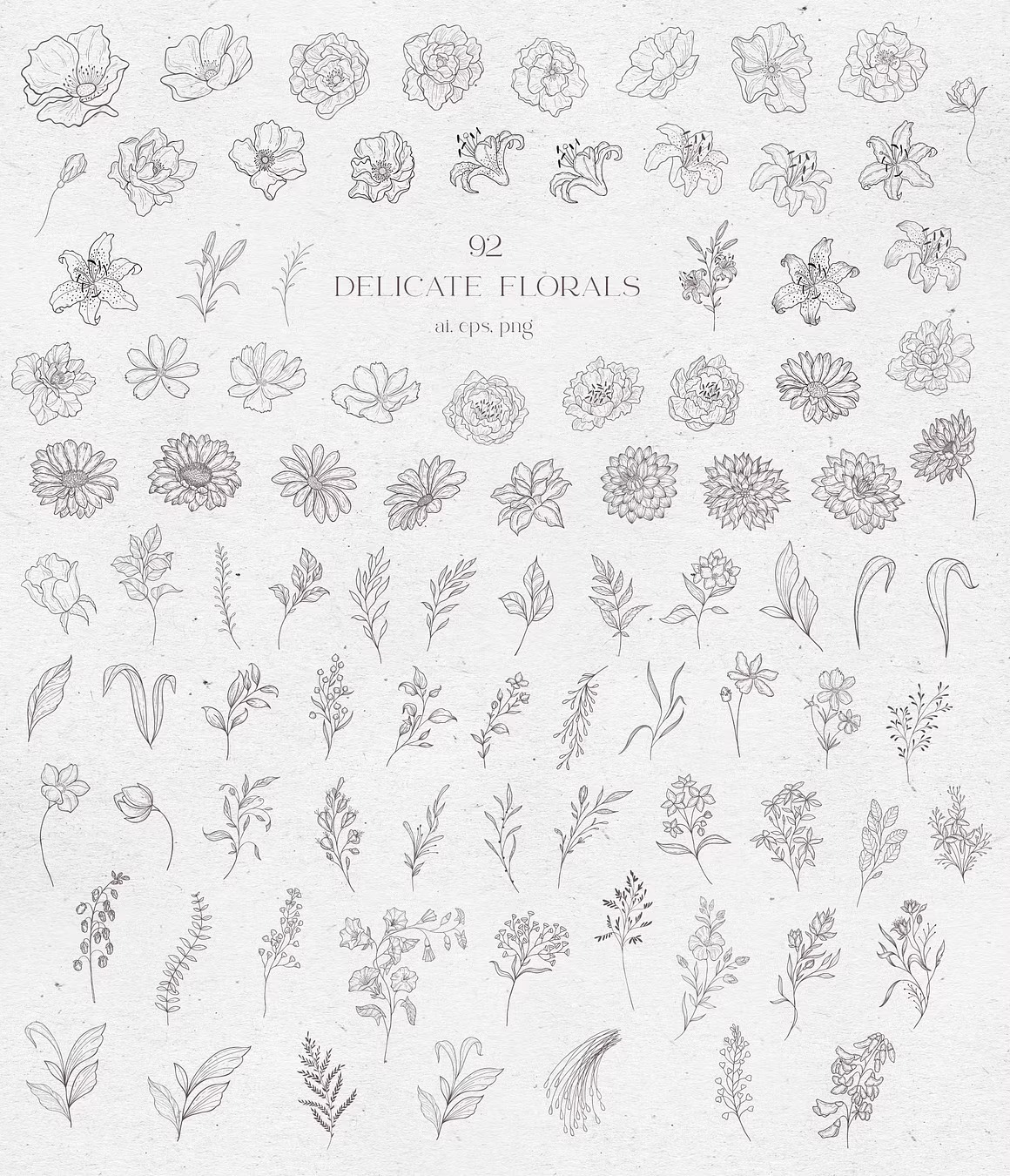 - 92 Florals without white fill, as Ai, Eps, Png 5000×5000 px, 300dpi