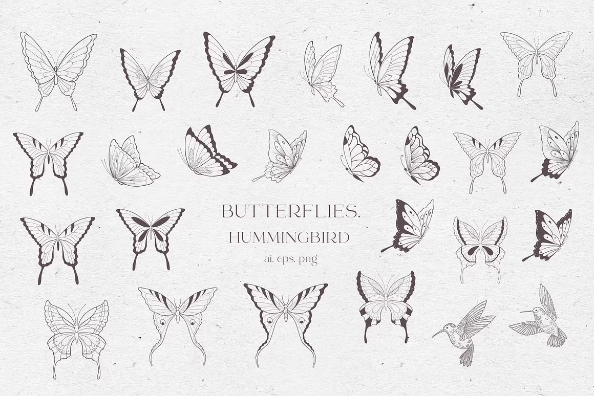 - 24 Butterflies, as Ai, Eps, Png 5000×5000 px, 300dpi