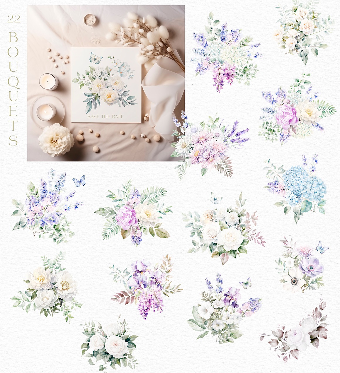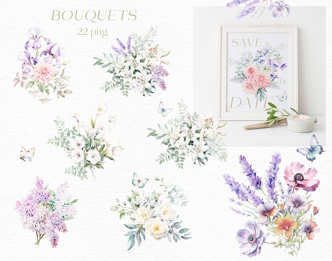 - 22 Bouquets, ~1900×1900 px, 3500×3800 px, 4300×4600 px, PNG 300 dpi